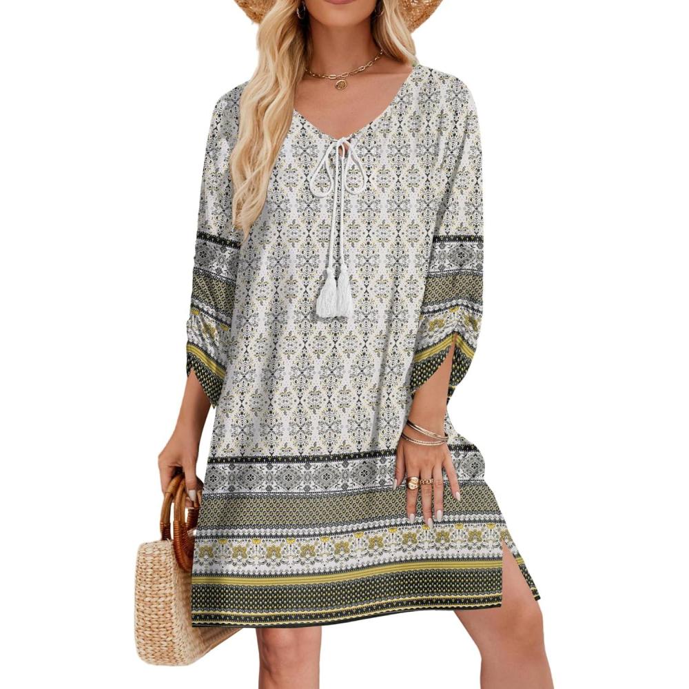 Be the first to review “Zeagoo Womens Boho Dresses Casual Beach Summer Dress Tassel Tie Neck 3/4 Long Sleeve Mini Sundress 2026 Floral Print Cover Up(01 White)”