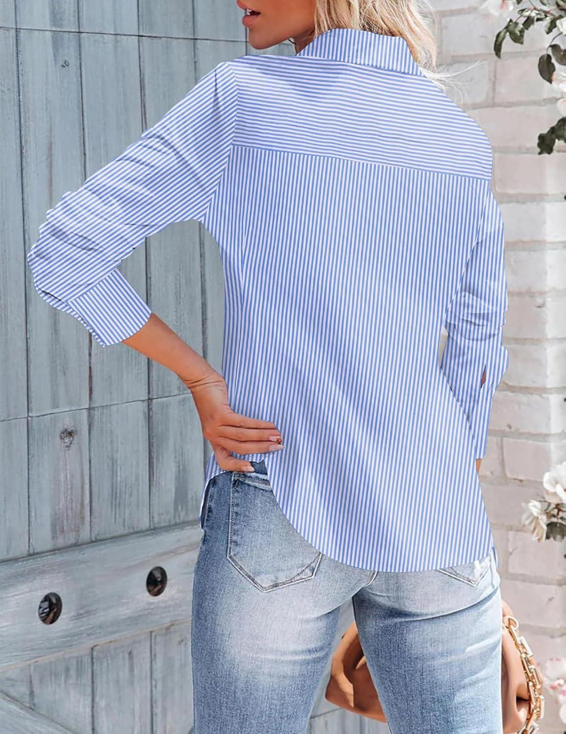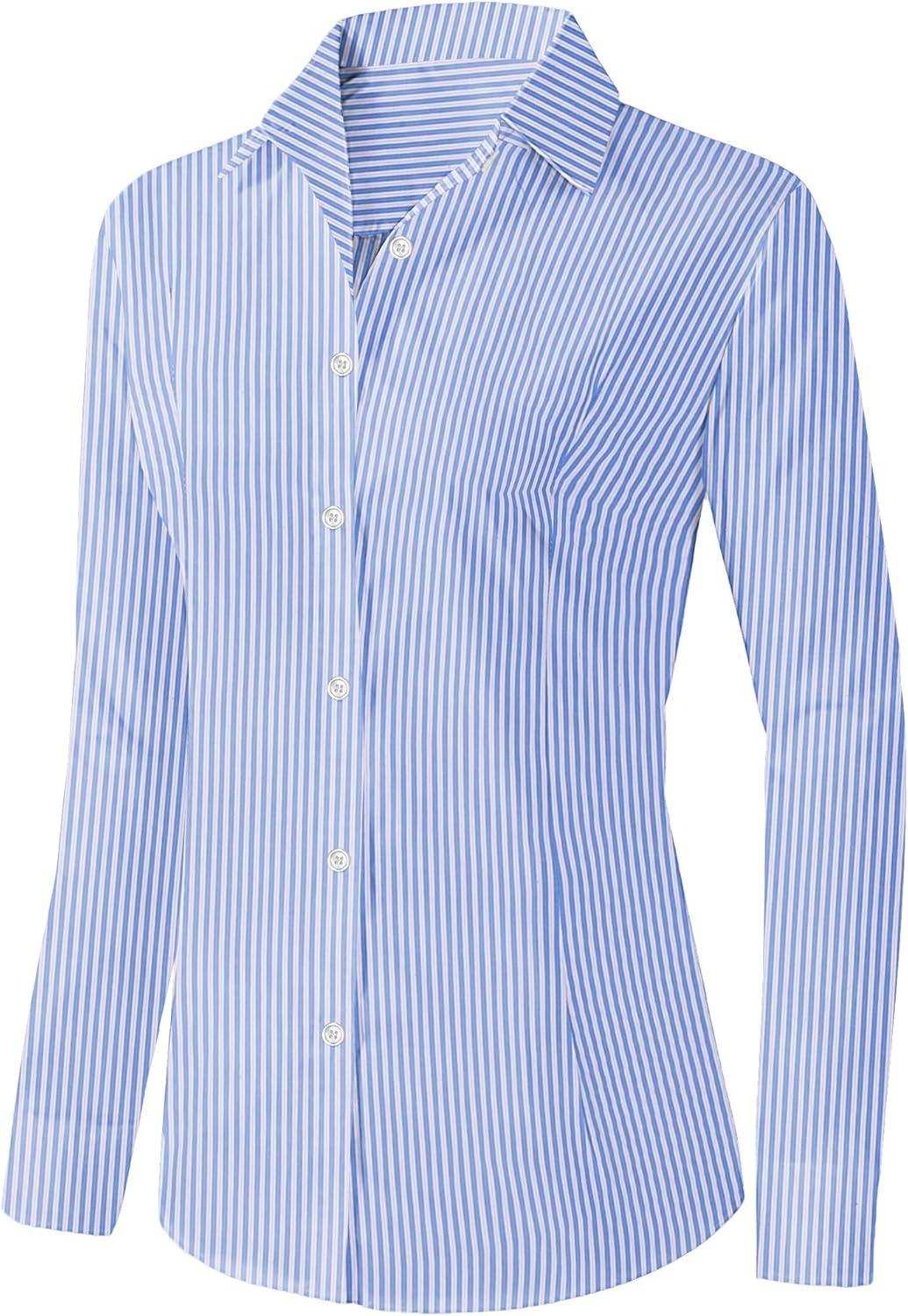 Zeagoo Womens Button Down Shirts Long Sleeve V Neck Tops Wrinkle Free Collared Work Office Solid Blouses Corset Tops(Light Blue Stripe)