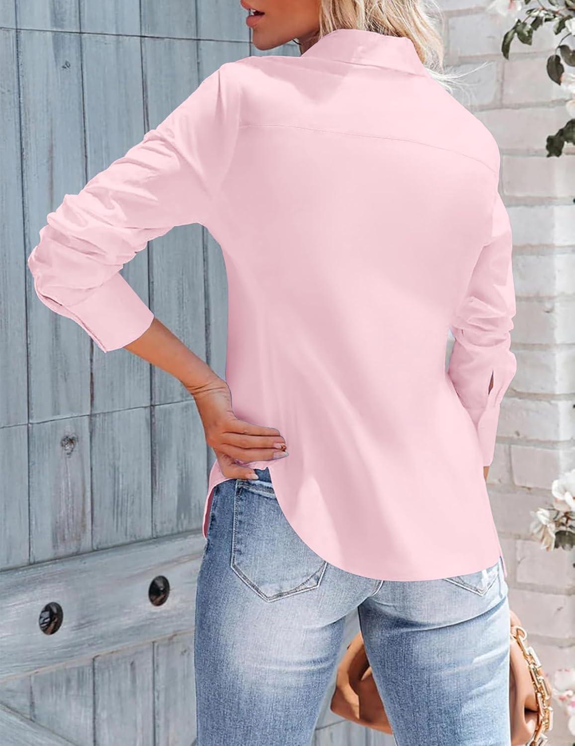 Get more for your money with our exclusive bundle deals on Zeagoo Womens Button Down Shirts Long Sleeve V Neck Tops Wrinkle Free Collared Work Office Solid Blouses Corset Tops(Pink) and accessories.