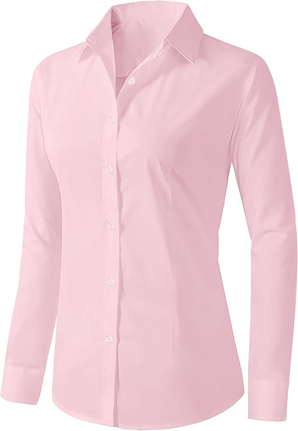 Zeagoo Womens Button Down Shirts Long Sleeve V Neck Tops Wrinkle Free Collared Work Office Solid Blouses Corset Tops(Pink)