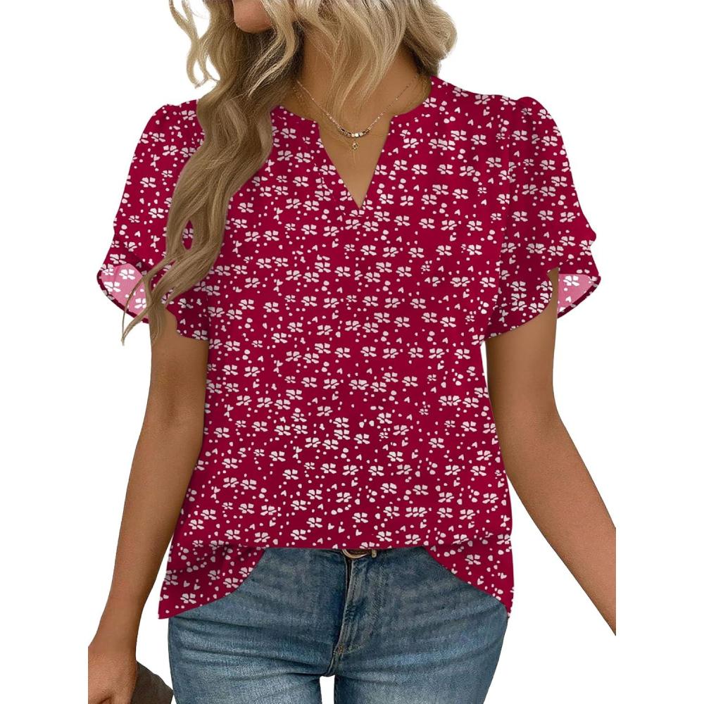 Zeagoo Womens Dressy Casual Shirts Short Sleeve V Neck Work Blouse Business Casual Summer Chiffon Tops(Berryflake)