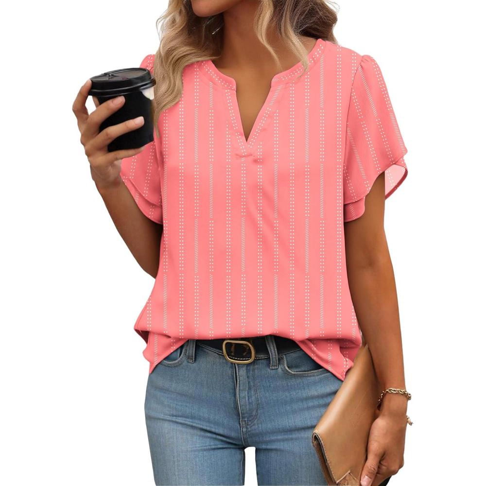 Zeagoo Womens Dressy Casual Shirts Short Sleeve V Neck Work Blouse Business Casual Summer Chiffon Tops(Stripe)