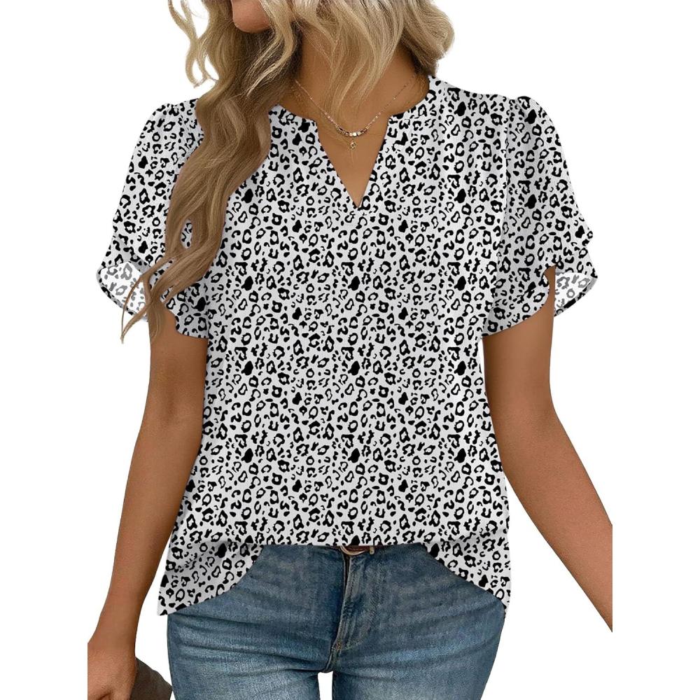 Zeagoo Womens Dressy Casual Shirts Short Sleeve V Neck Work Blouse Business Casual Summer Chiffon Tops(White Cheetah)