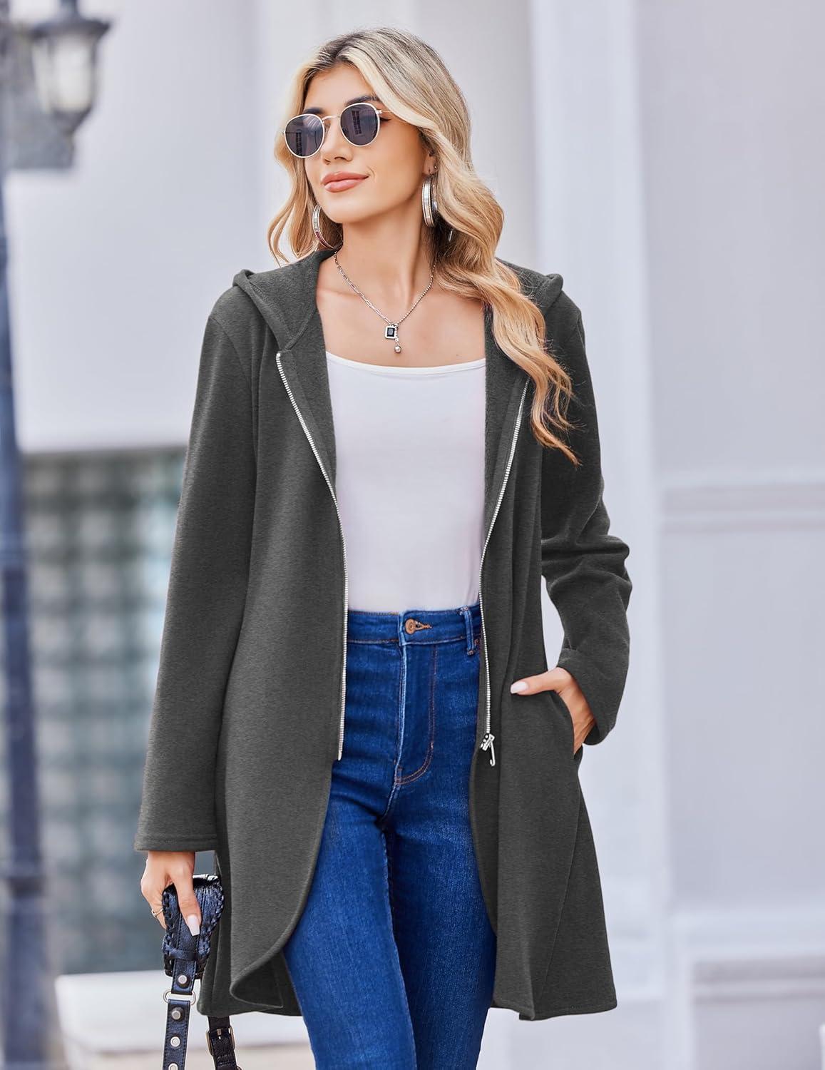 Zeagoo Women’s Fall Jacket 2025 Zip Up Hoodies Long Sleeve Long Tunic Sweatshirts Oversized Fleece Casual Coat with Pocket(A_fleece Fabric_dark Gray)