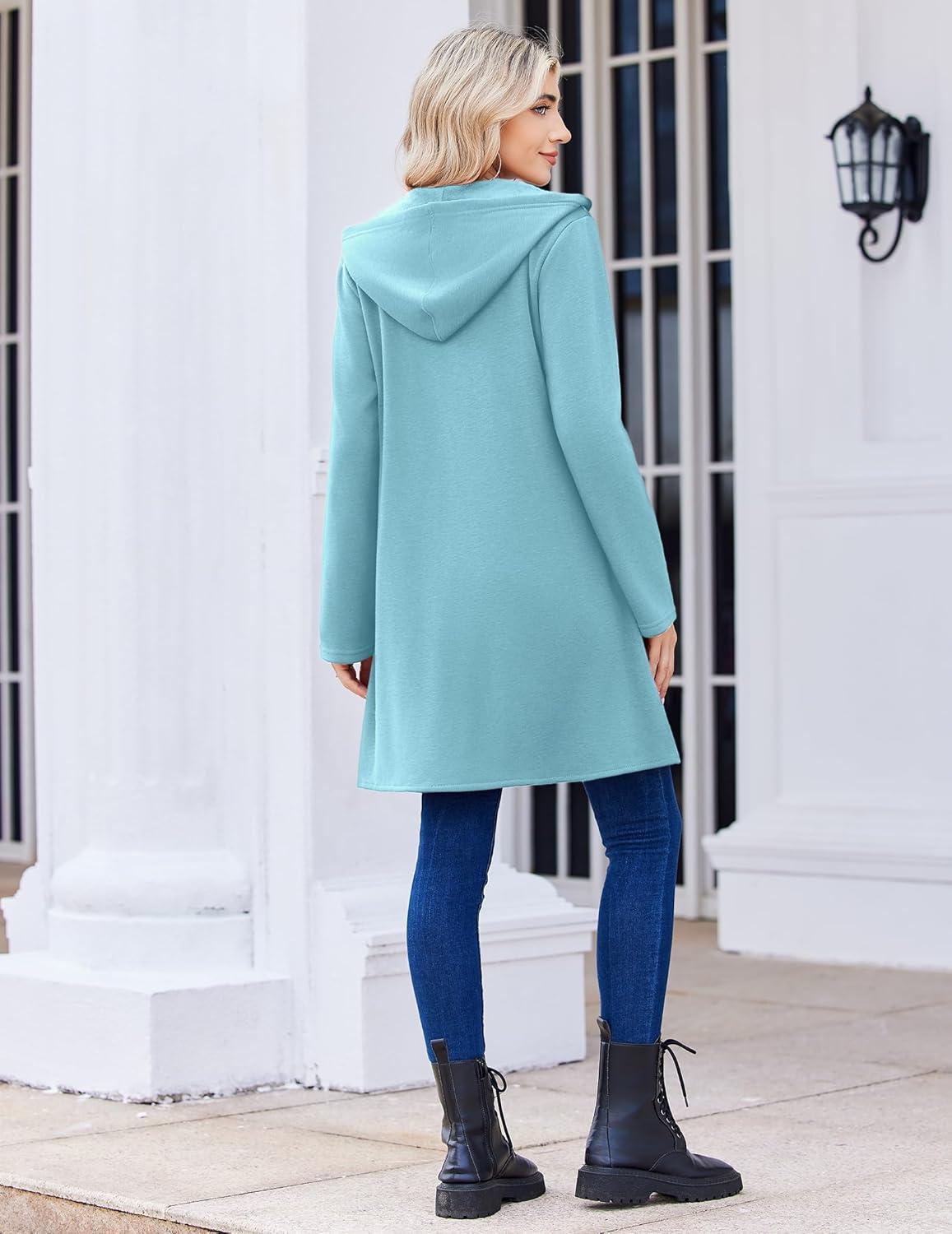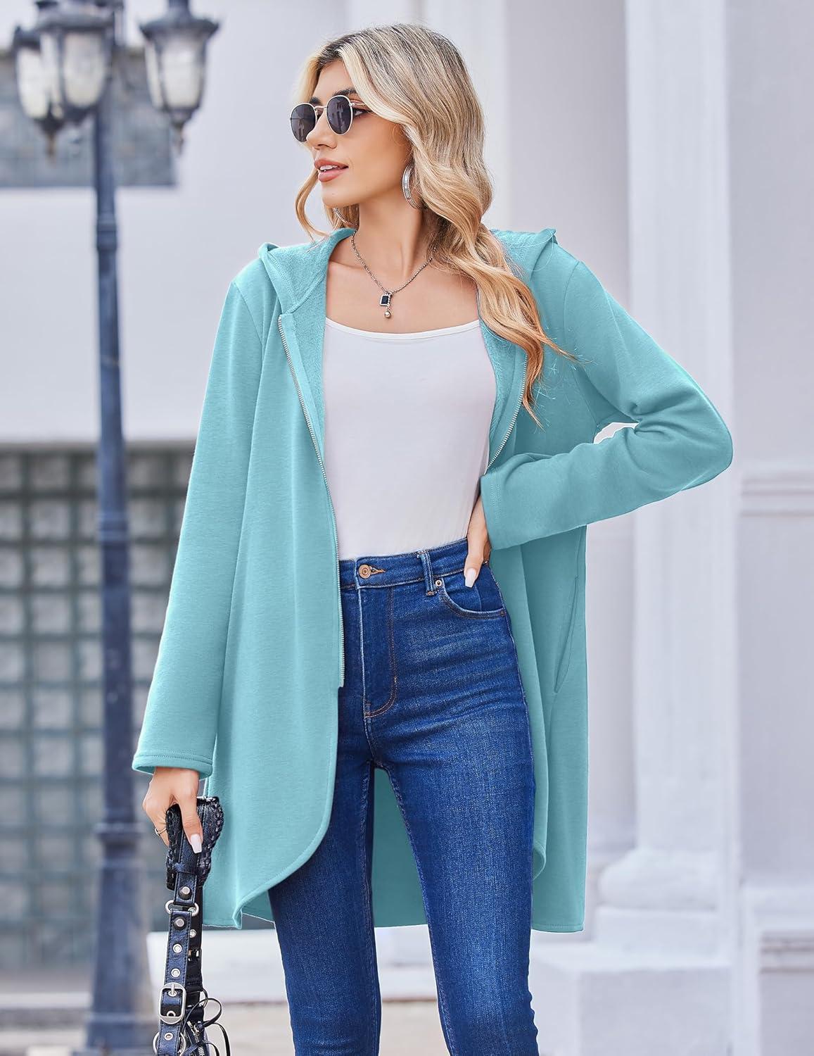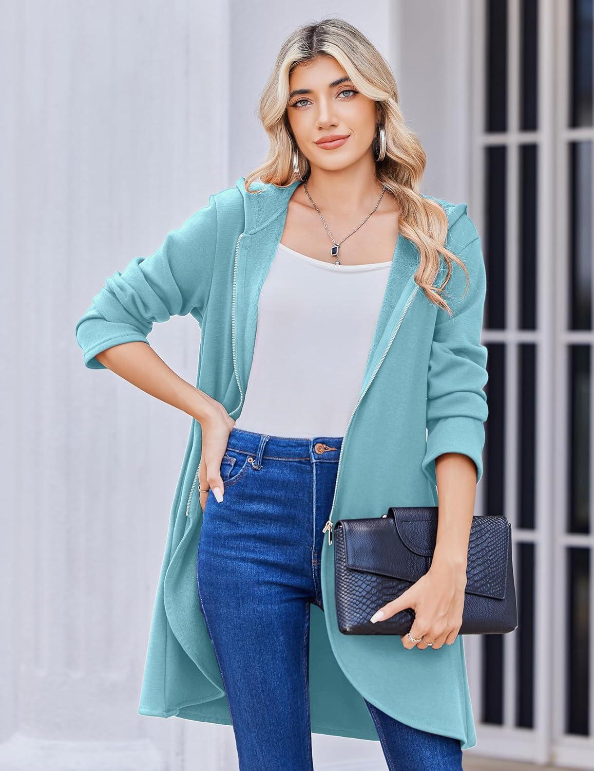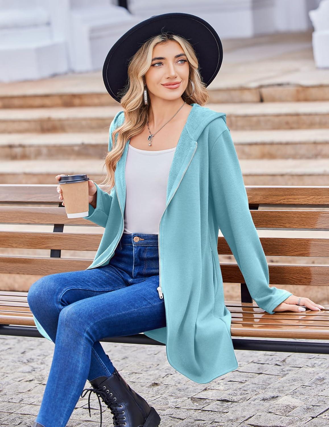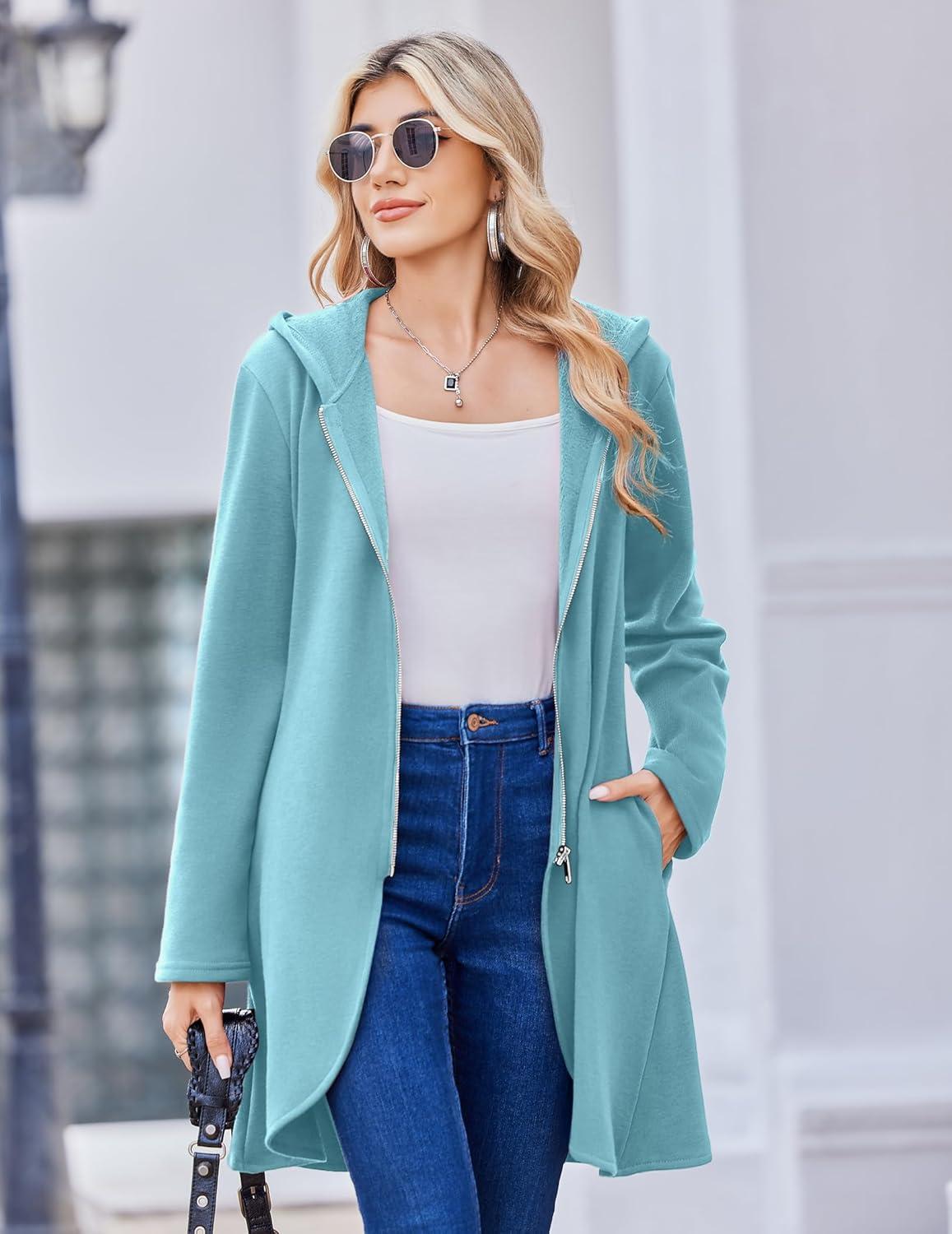 Zeagoo Women’s Fall Jacket 2025 Zip Up Hoodies Long Sleeve Long Tunic Sweatshirts Oversized Fleece Casual Coat with Pocket(A_fleece Fabric_light Blue)