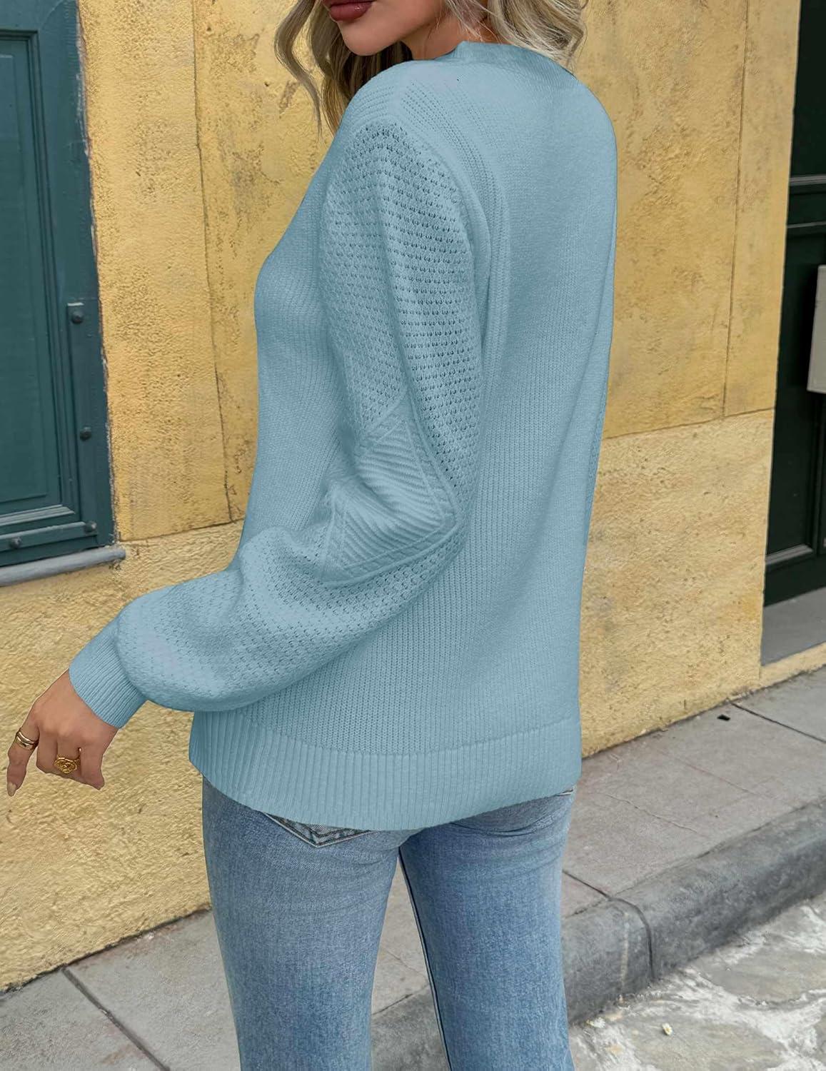 Zeagoo Womens Fall Tops 2025 Fashion V Neck Long Sleeve Pullover Sweater S-XXL(Blue)