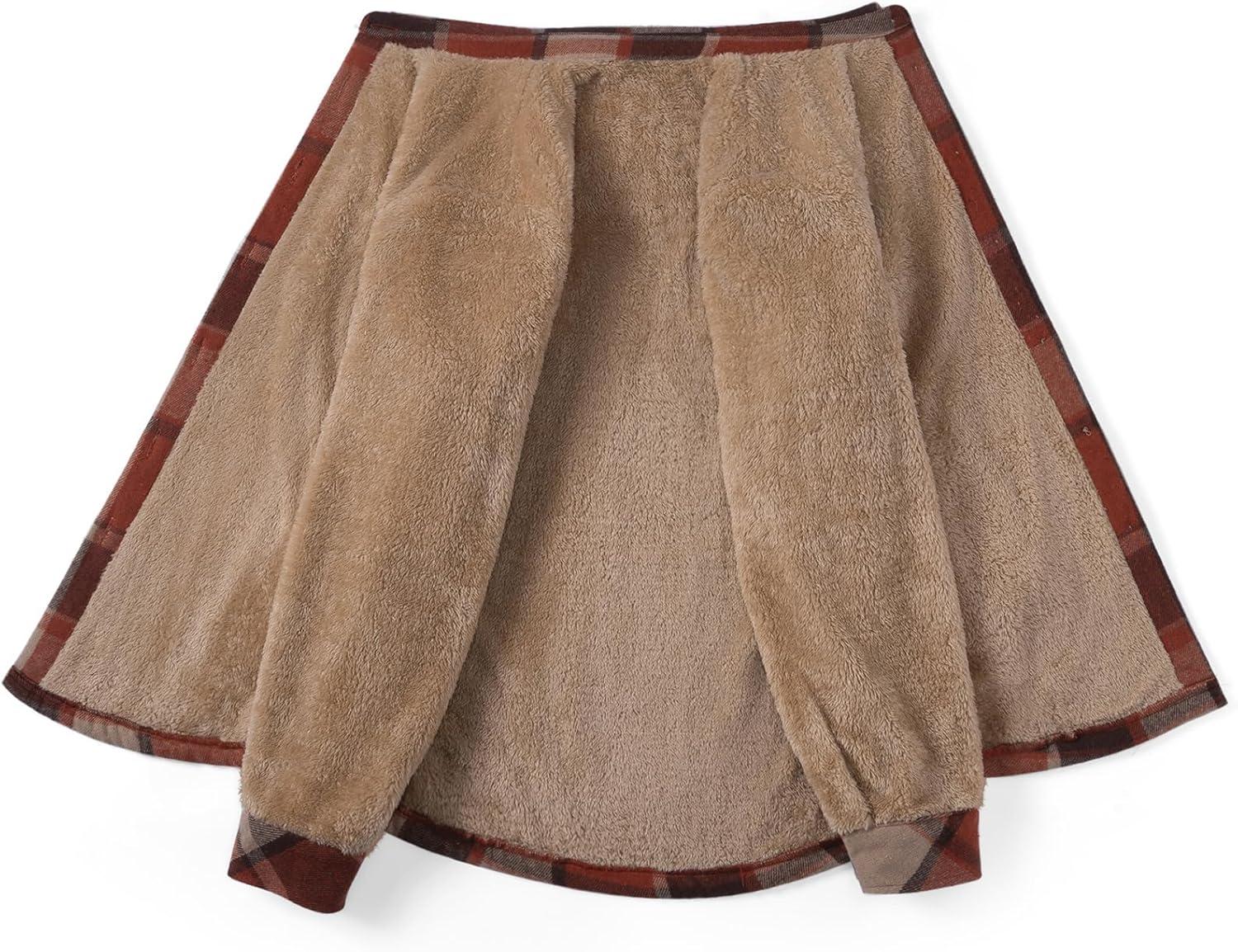 Zeagoo Women’s Fleece Sherpa Jacket Casual Long Sleeve Button Down Flannel Shacket Shirt Winter Coat with Pockets(Brown Black)