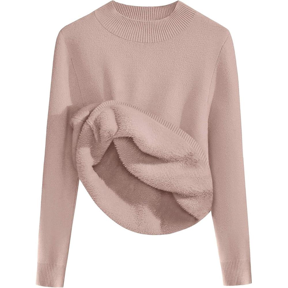 Zeagoo Women’s Fleece Sherpa Lined Sweater Mock Neck Long Sleeve Thermal Shirt 2025 Fall Winter Fuzzy Knit Jumper Tops S-XXL(Khaki)