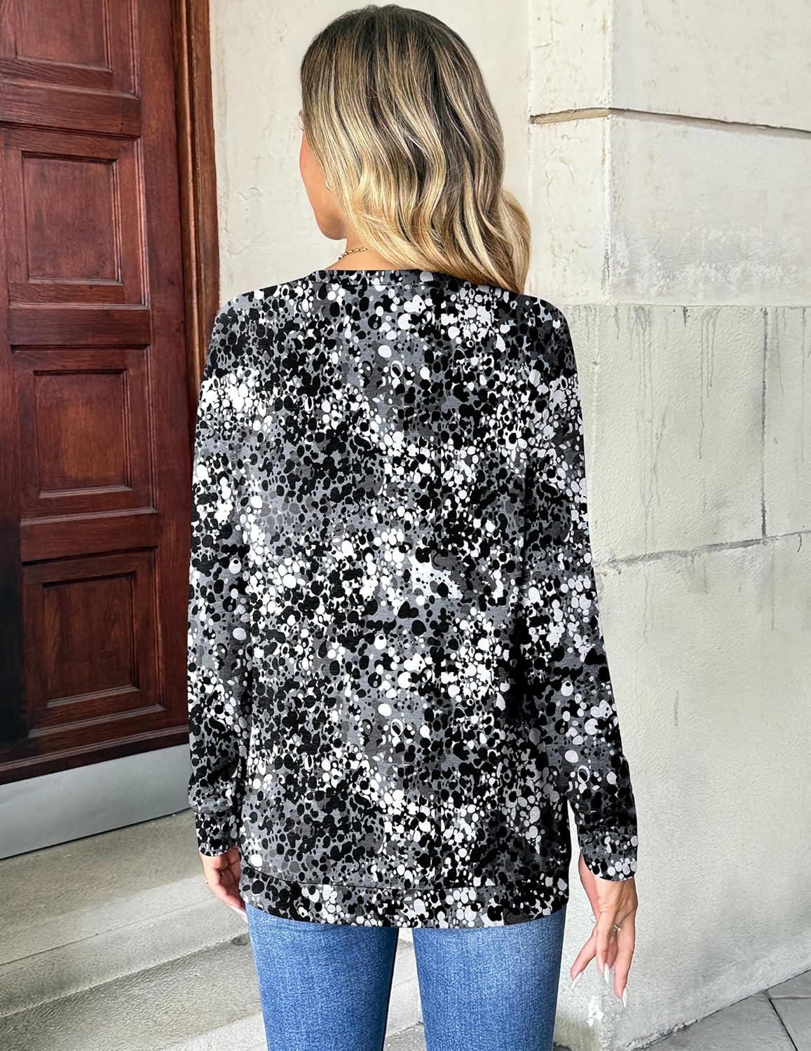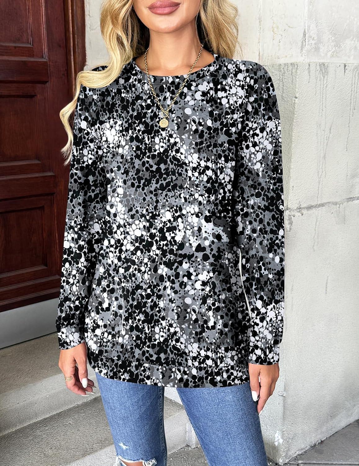Zeagoo Women’s Long Sleeve Shirts Basic Crewneck Blouses Dressy Casual Loose Tunic Tops with Pockets S-XXL(Bf290)