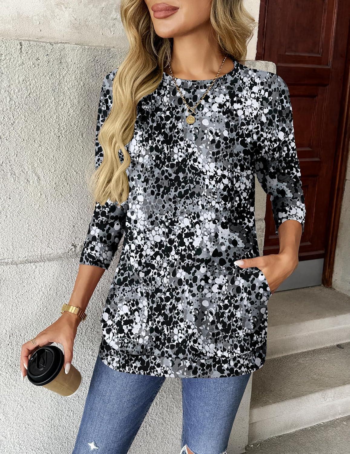 Zeagoo Women’s Long Sleeve Shirts Basic Crewneck Blouses Dressy Casual Loose Tunic Tops with Pockets S-XXL(Cx273)