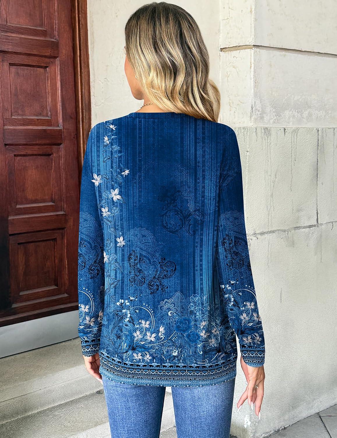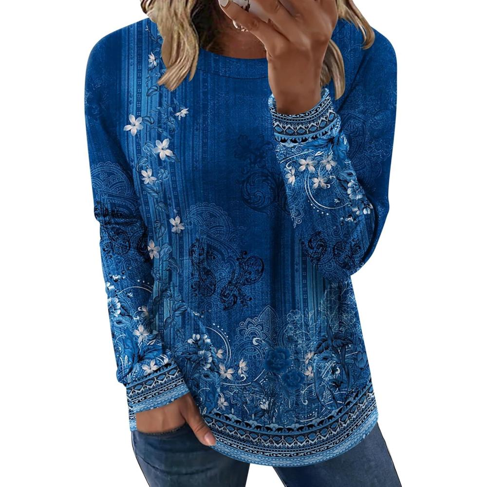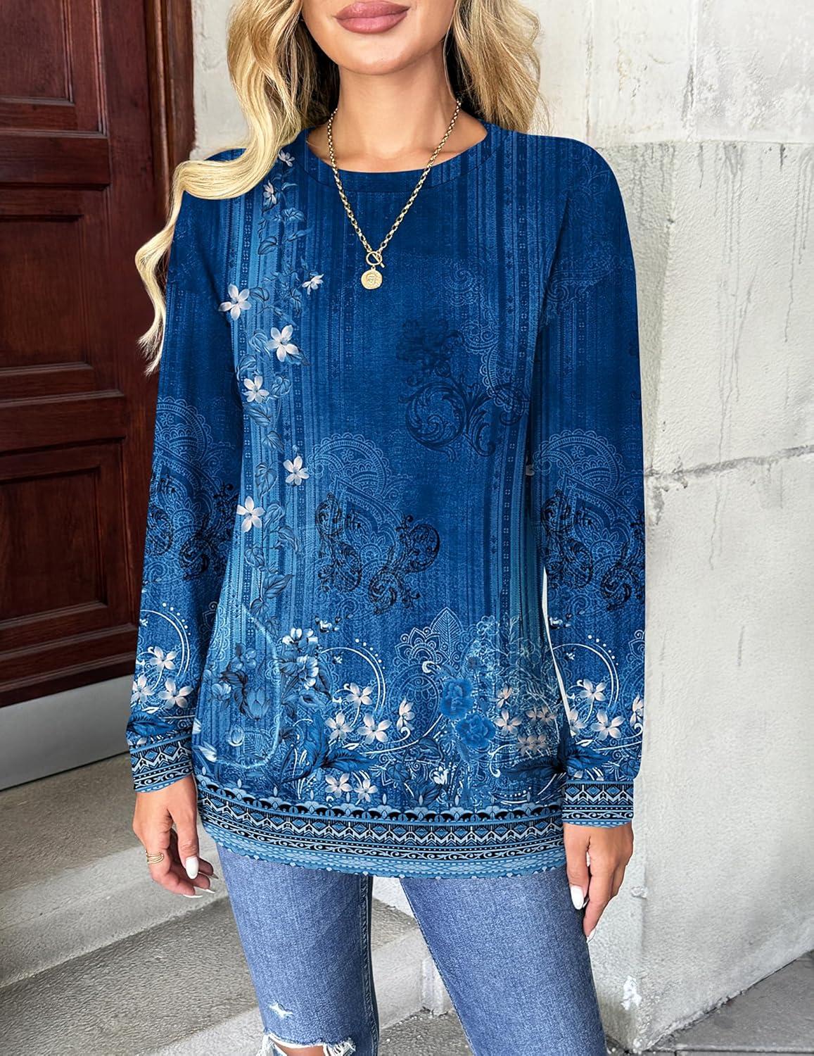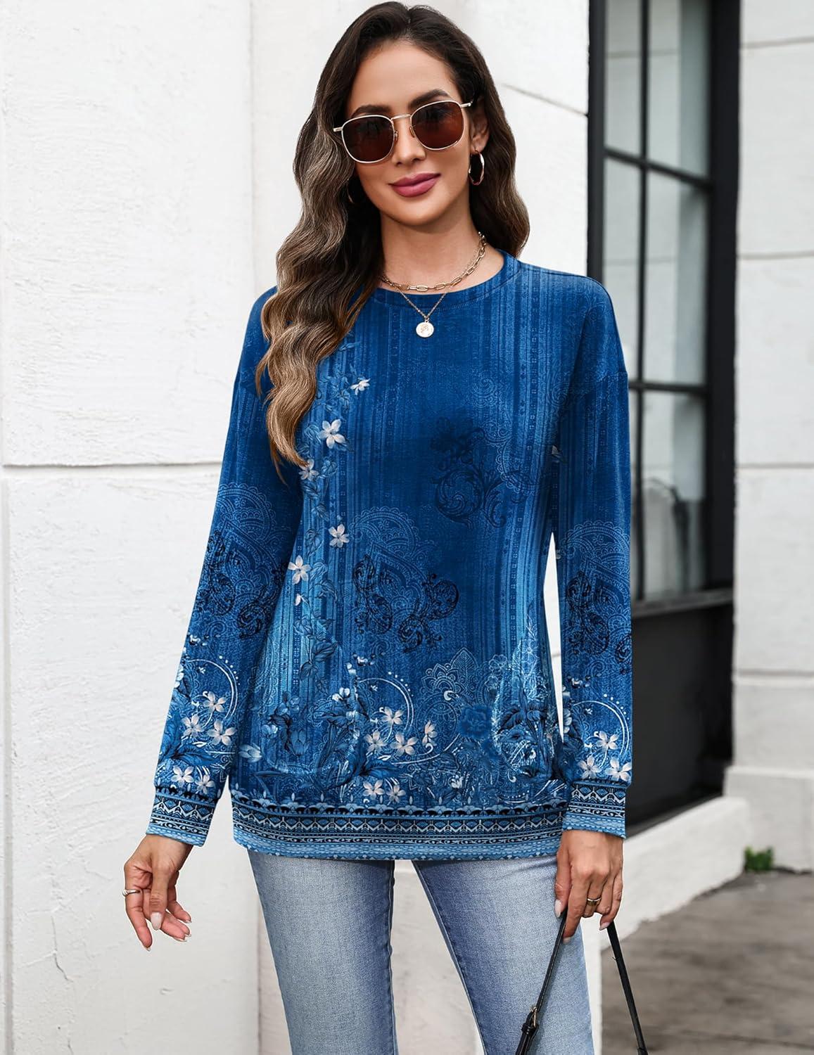 Zeagoo Women’s Long Sleeve Shirts Basic Crewneck Blouses Dressy Casual Loose Tunic Tops with Pockets S-XXL(Jh398)