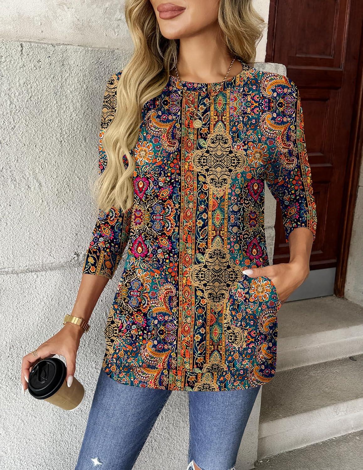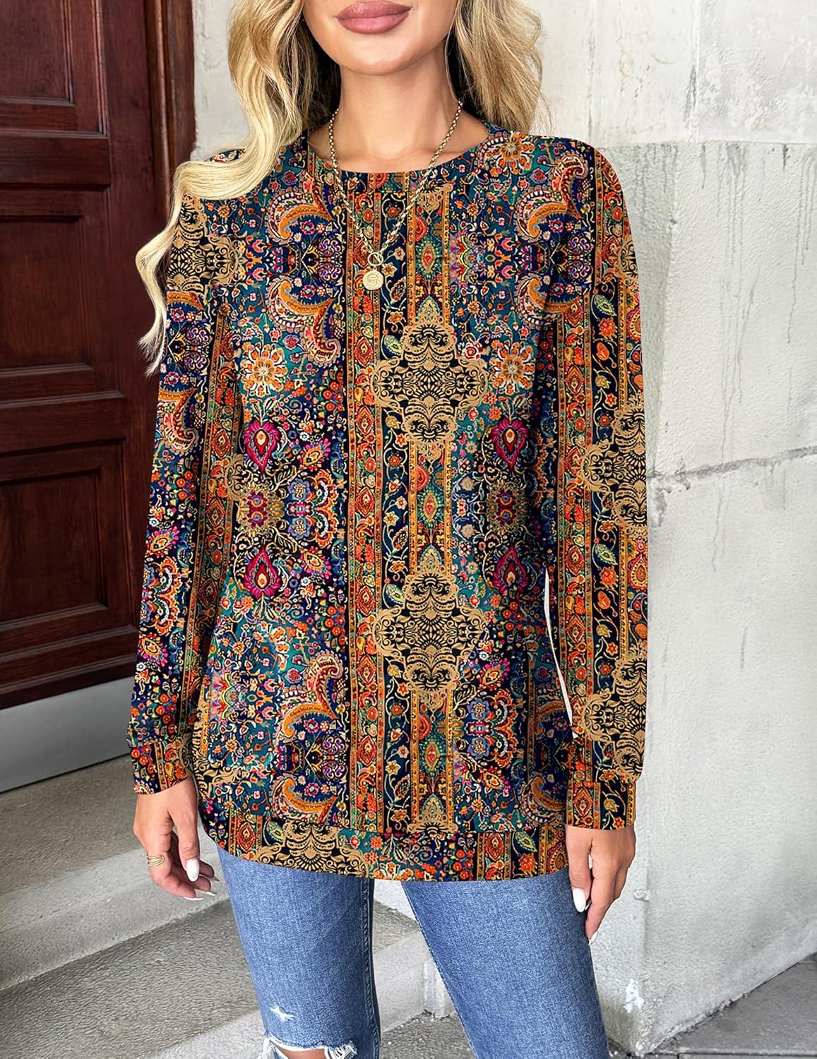 Zeagoo Women’s Long Sleeve Shirts Basic Crewneck Blouses Dressy Casual Loose Tunic Tops with Pockets S-XXL(Mz857)