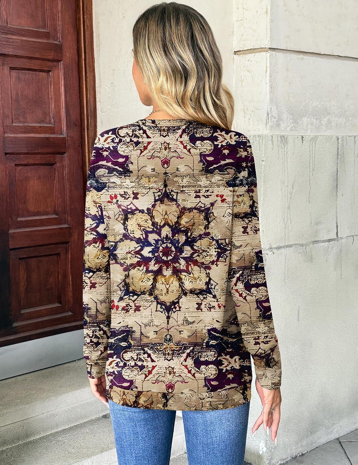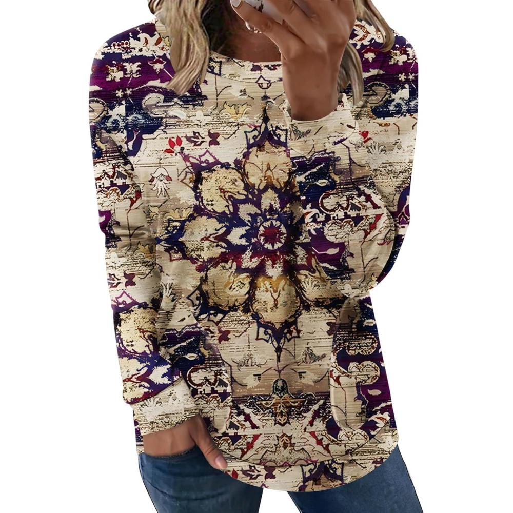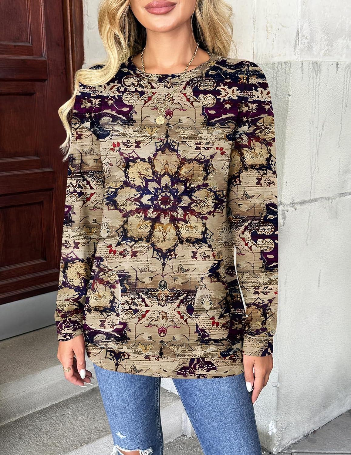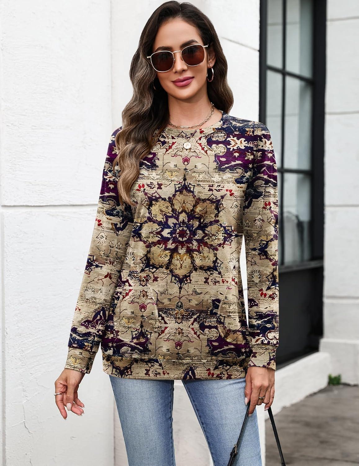 Zeagoo Women’s Long Sleeve Shirts Basic Crewneck Blouses Dressy Casual Loose Tunic Tops with Pockets S-XXL(Pa222)