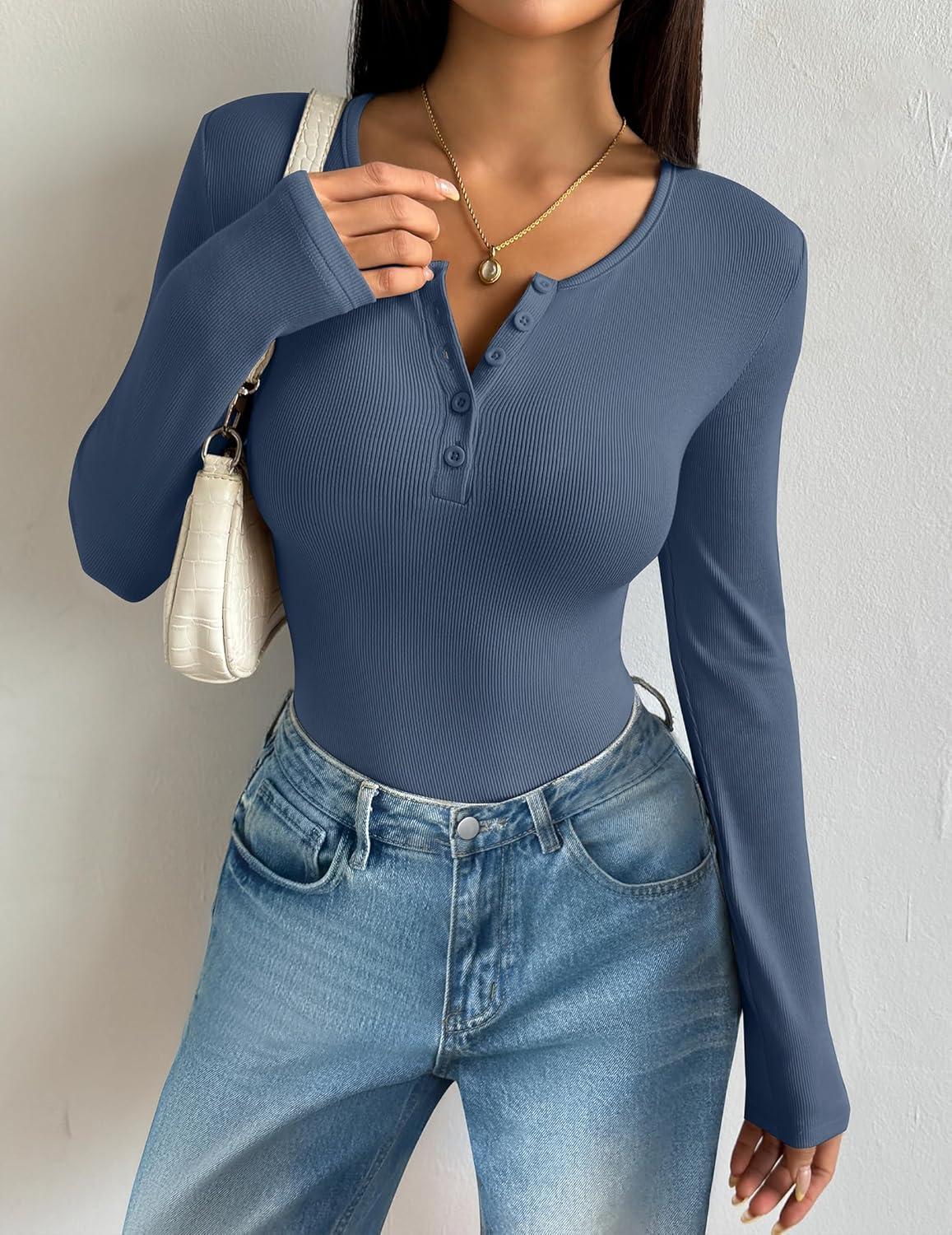 Zeagoo Womens Long Sleeve Stretch Crewneck Ribbed T-Shirt Slim Fit Casual Basic Tops S-XXL(B_black+grey+blue)