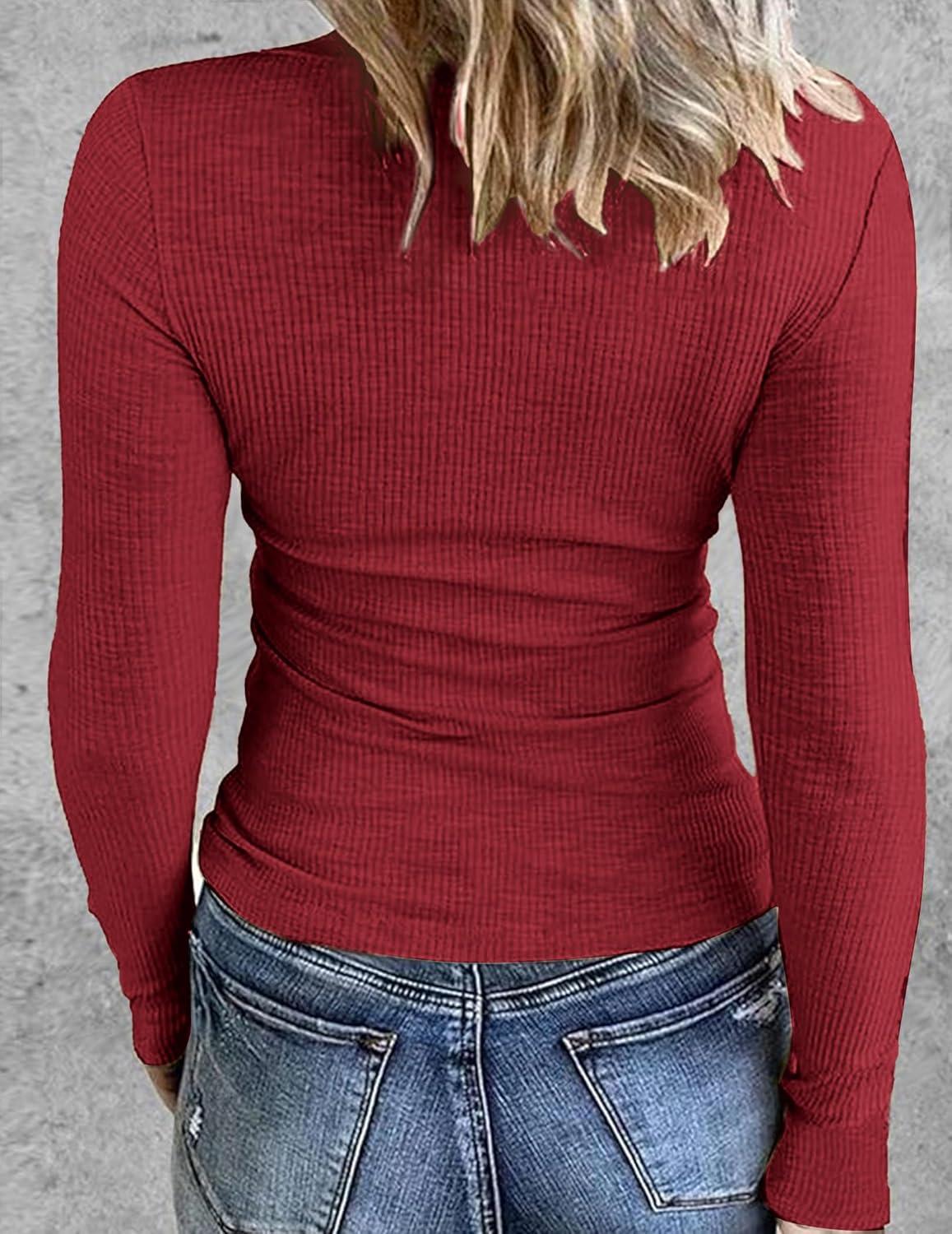 Zeagoo Womens Long Sleeve Stretch Crewneck Ribbed T-Shirt Slim Fit Casual Basic Tops S-XXL(B_black+white+red)