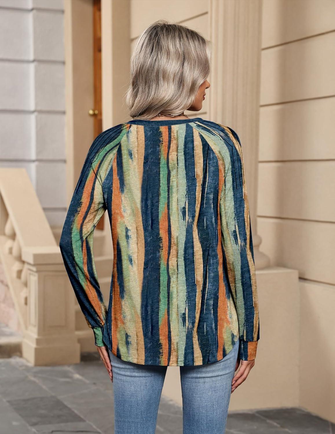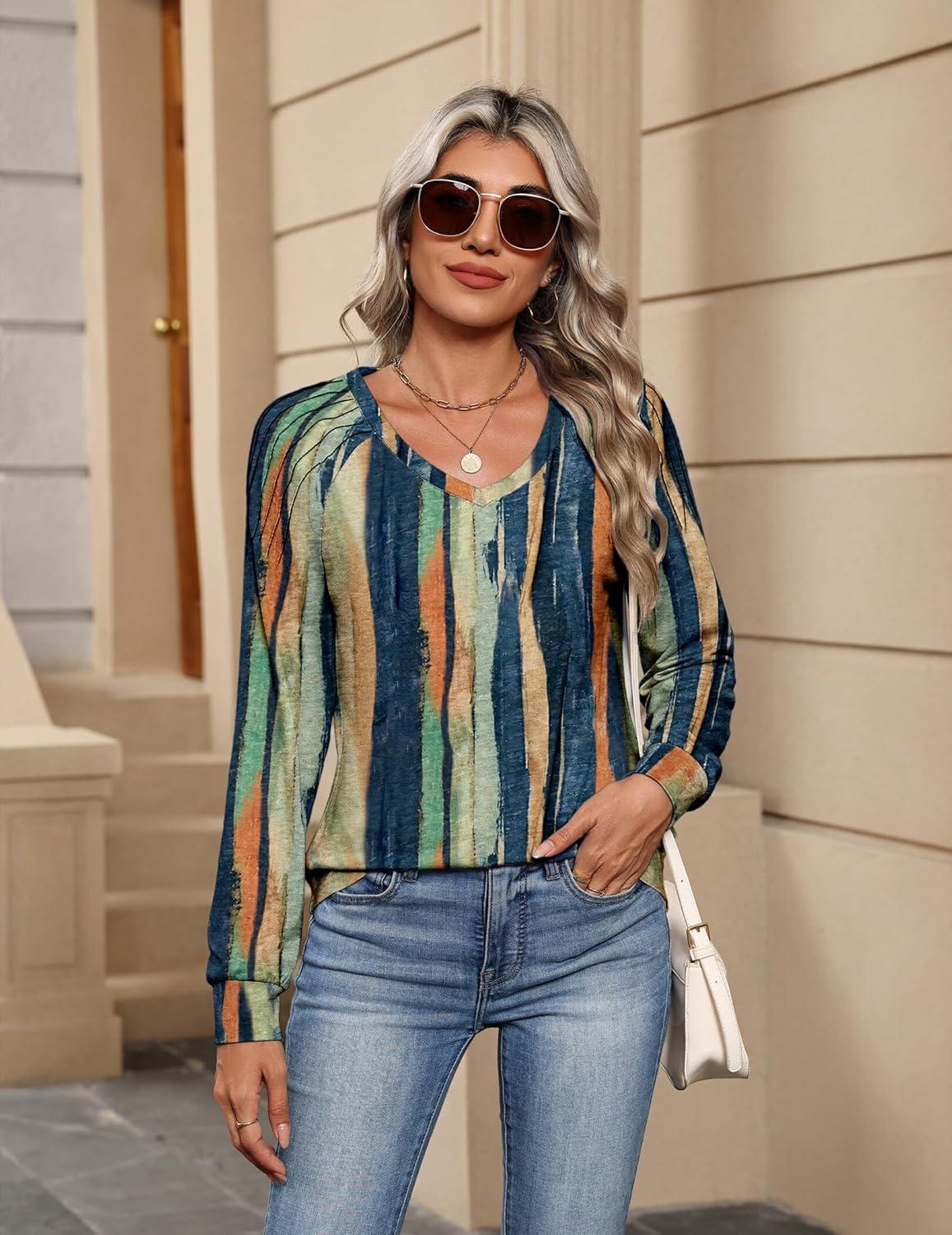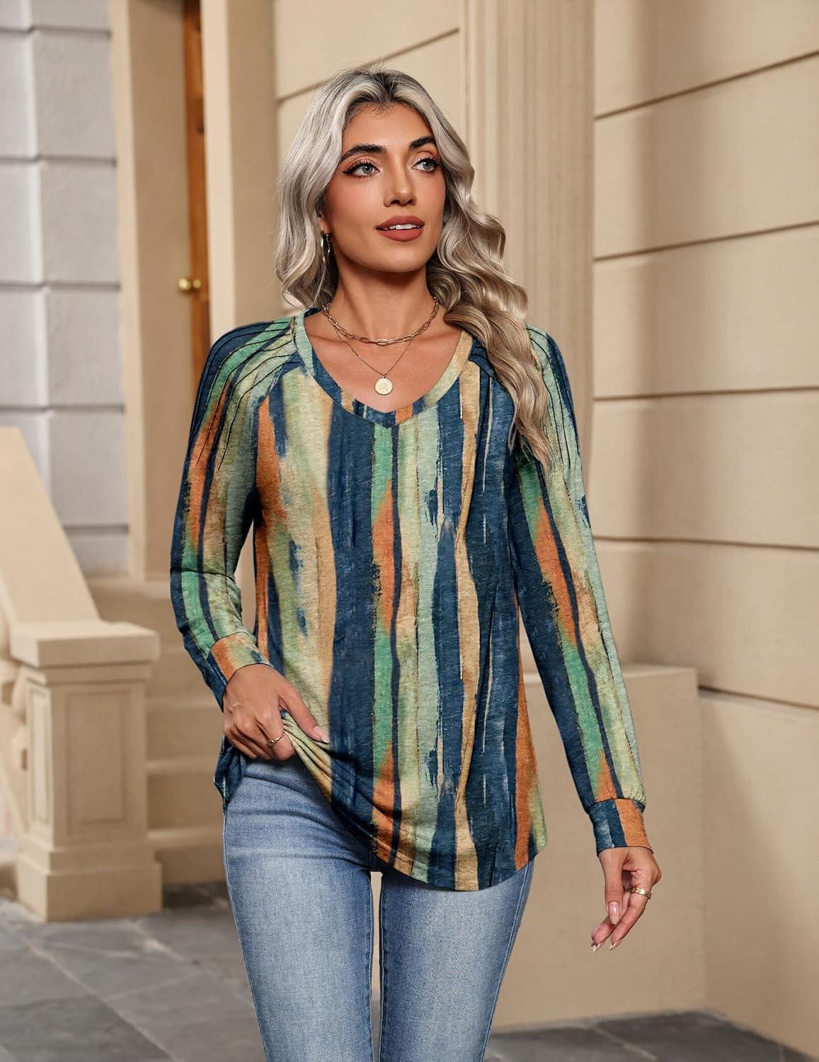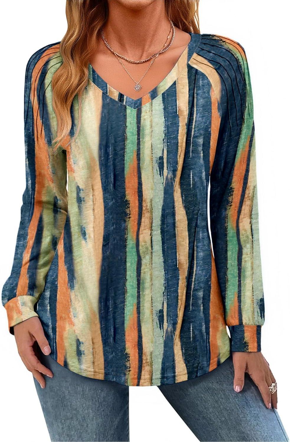 Zeagoo Womens Long Sleeve Tops V Neck Pleated Shirts Dressy Casual Blouses Fall Fashion Tunic Clothes 2025 T-Shirts(Multi Floral)