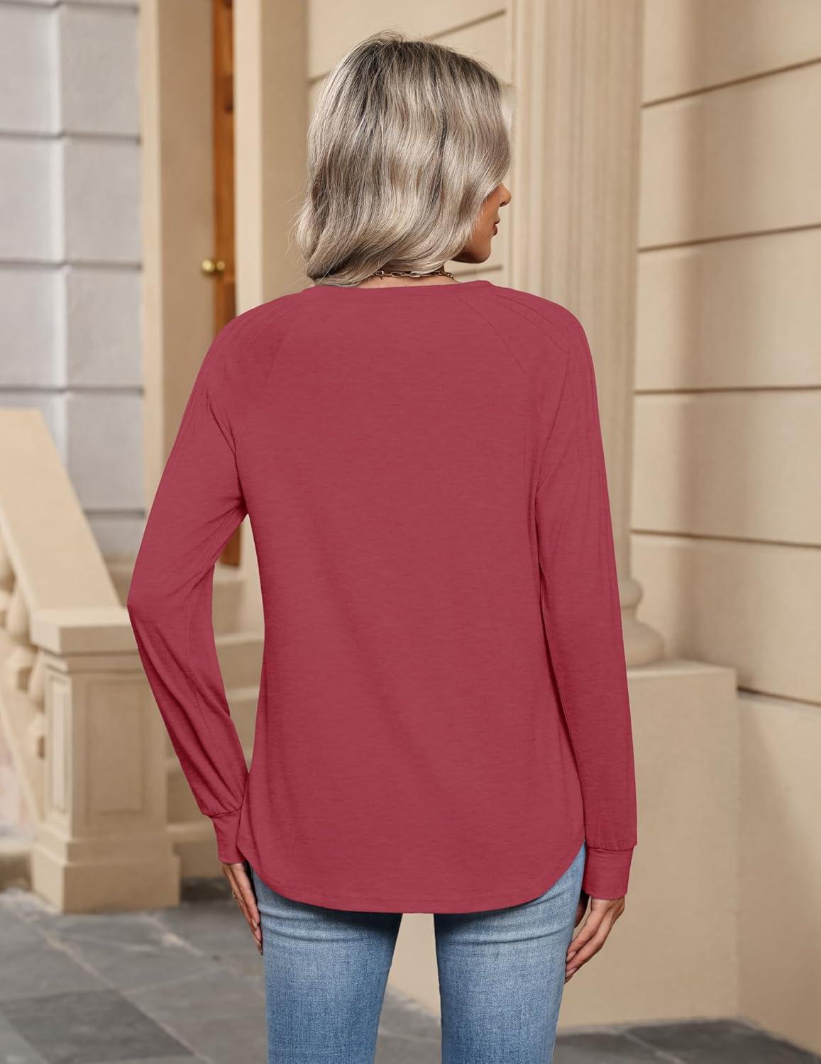 Zeagoo Womens Long Sleeve T Shirts V Neck Soft Basic Tee Loose Fit Casual Tops Fall Fashion(Christmas Red)