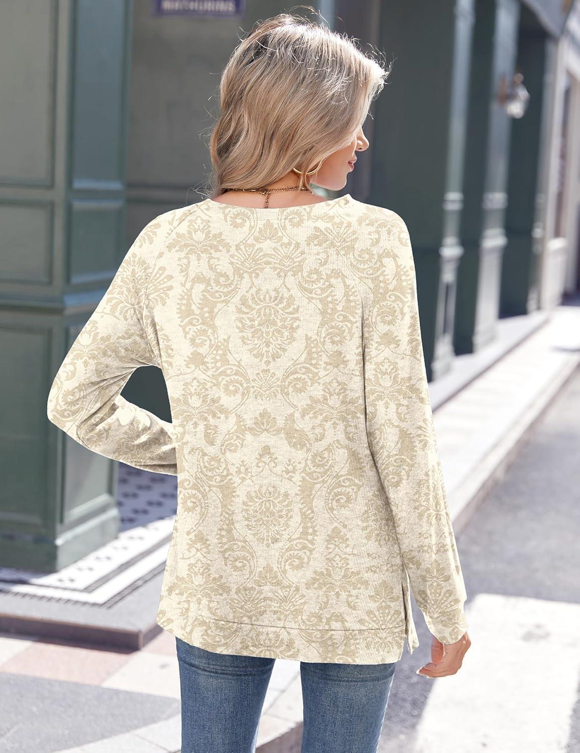 Zeagoo Womens Long Sleeve Tshirts Casual Tunic Tops Work Fashion Cute Sweaters Fall Outfits 2025 Dressy Blouse(01-vintage Floral)
