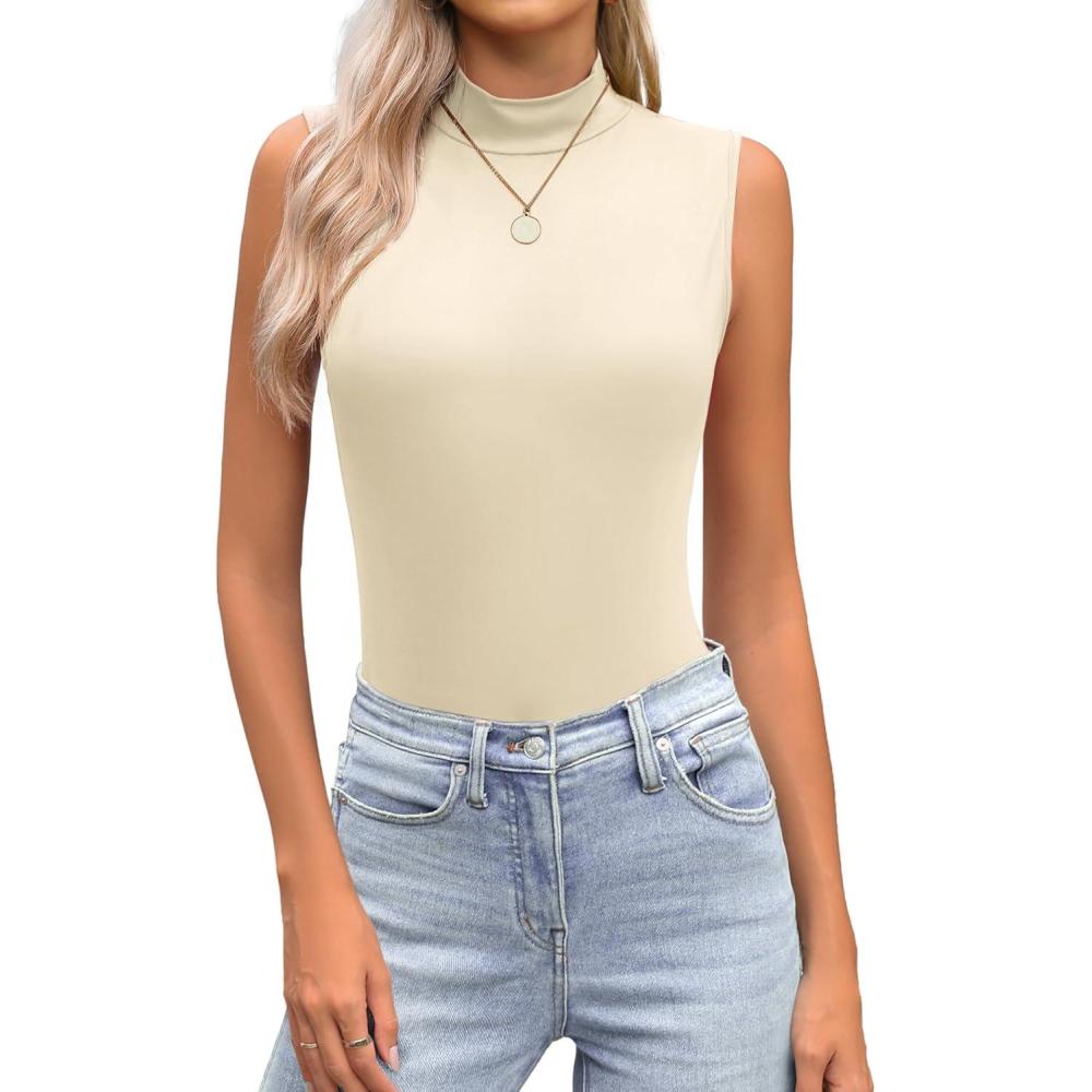Zeagoo Womens Mock Turtleneck Tank Tops 2026 Slim Fitted Sleeveless Top Stretchy Basic Casual Layer Tee Shirts(Beige)