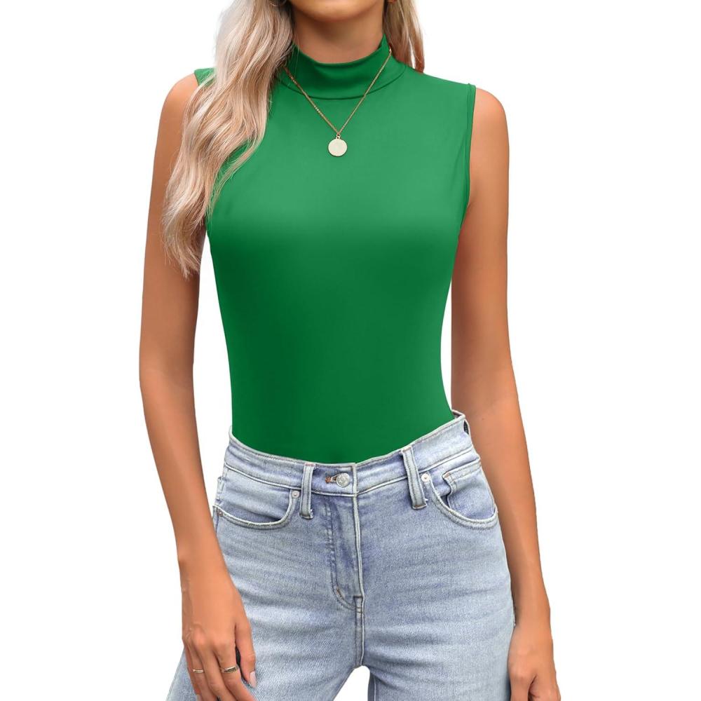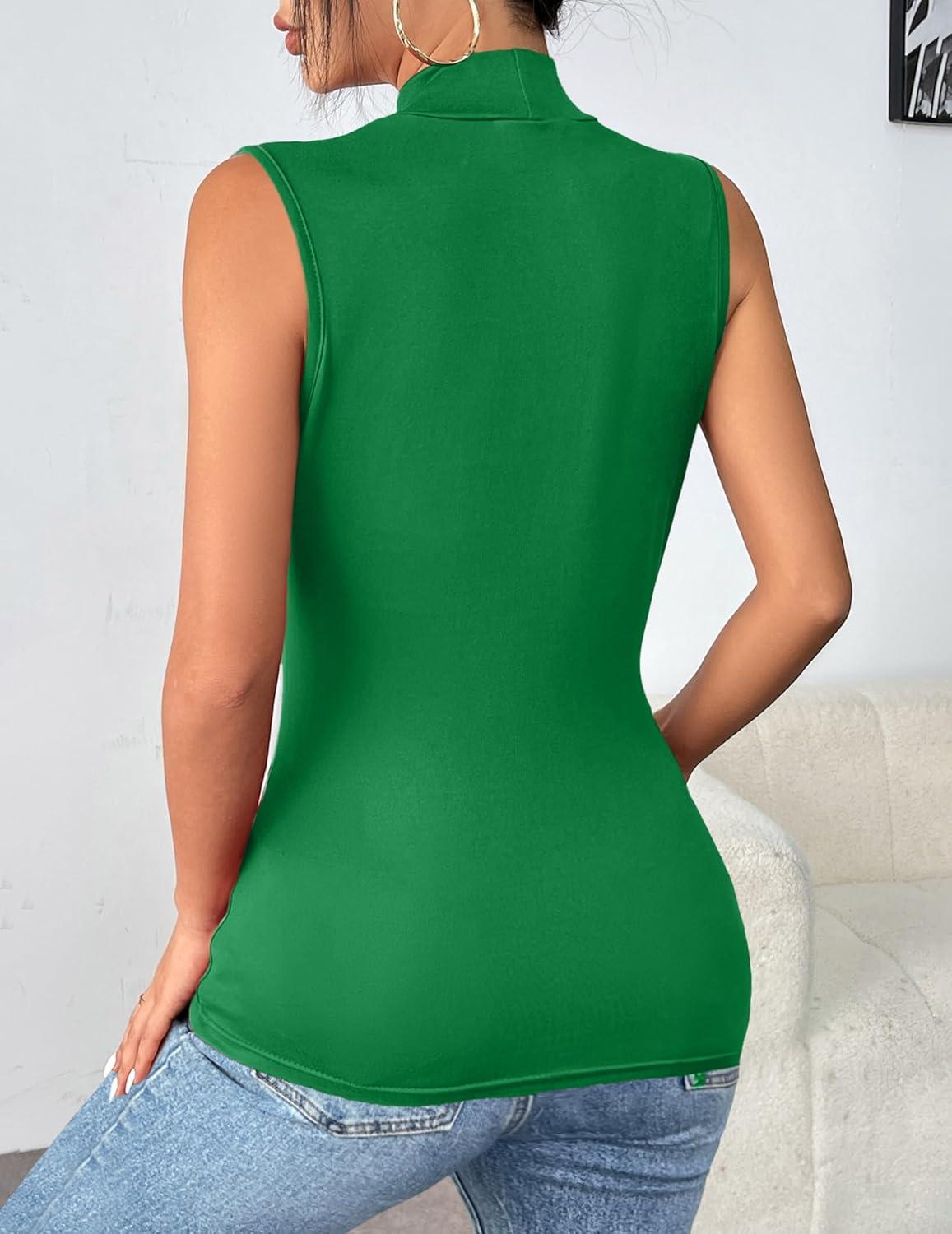 Zeagoo Womens Mock Turtleneck Tank Tops 2026 Slim Fitted Sleeveless Top Stretchy Basic Casual Layer Tee Shirts(Green)