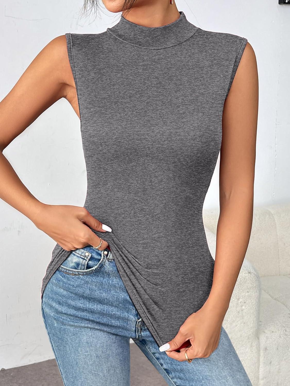 Zeagoo Womens Mock Turtleneck Tank Tops 2026 Slim Fitted Sleeveless Top Stretchy Basic Casual Layer Tee Shirts(Grey)