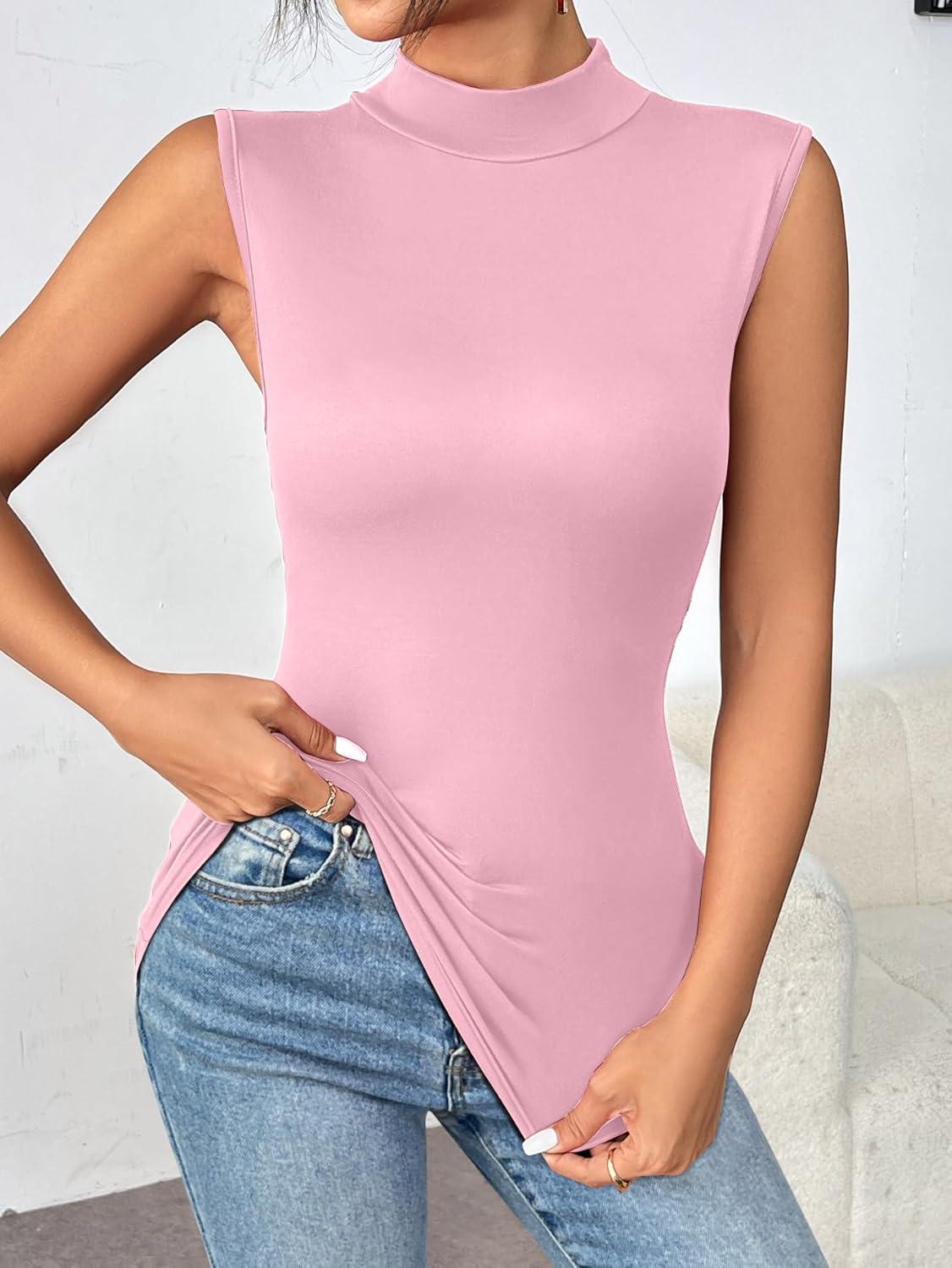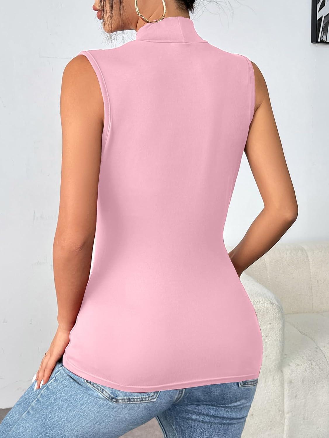 Zeagoo Womens Mock Turtleneck Tank Tops 2026 Slim Fitted Sleeveless Top Stretchy Basic Casual Layer Tee Shirts(Light Pink)