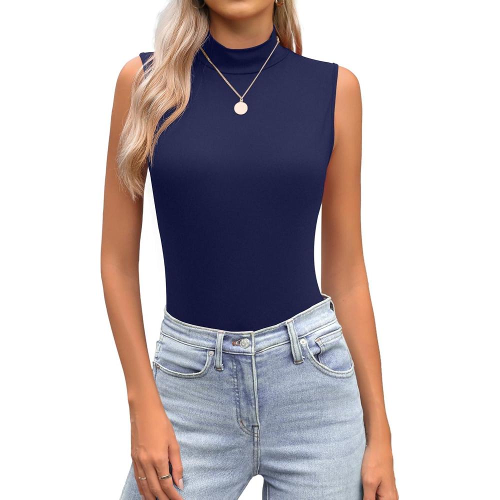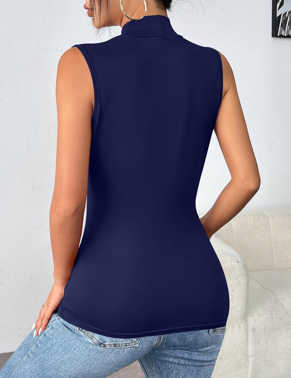 Zeagoo Womens Mock Turtleneck Tank Tops 2026 Slim Fitted Sleeveless Top Stretchy Basic Casual Layer Tee Shirts(Navy Blue)