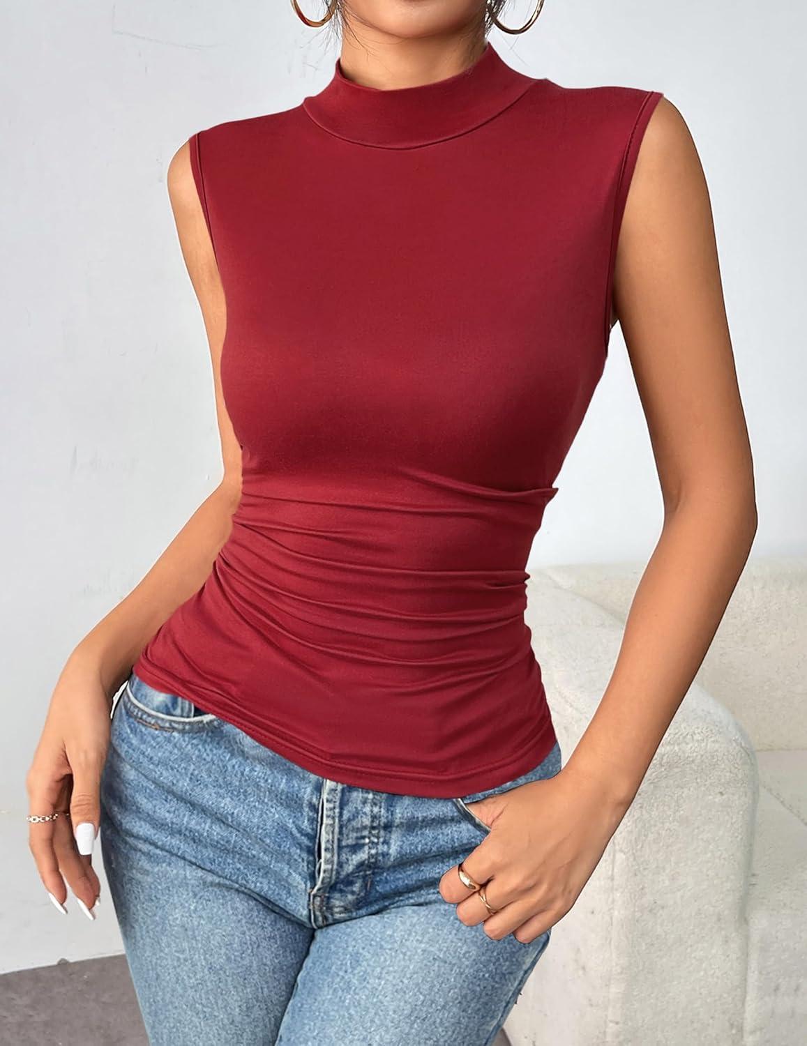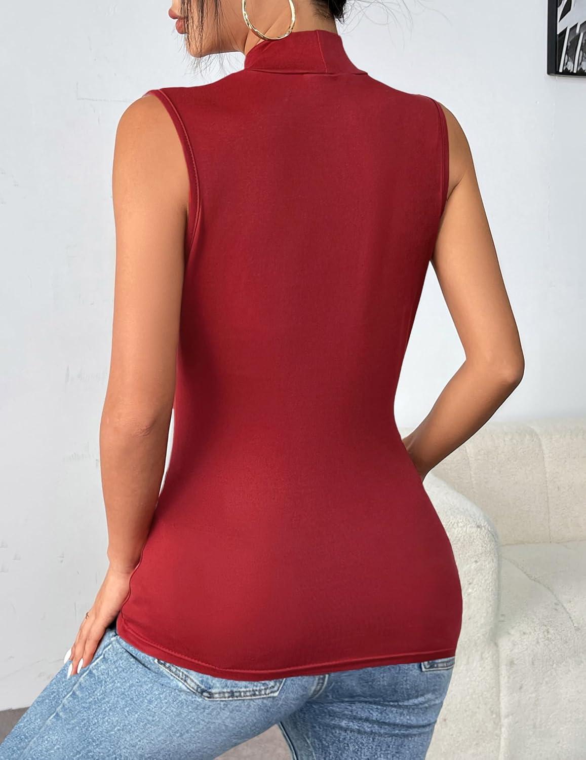Zeagoo Womens Mock Turtleneck Tank Tops 2026 Slim Fitted Sleeveless Top Stretchy Basic Casual Layer Tee Shirts(Wine Red)