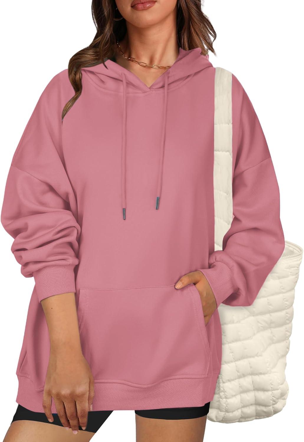 Zeagoo Womens Oversized Hoodies 2025 Fleece Sweatshirts Long Sleeve Pullover with Pocket Fall Winter Outfits Clothes(Deep Pink)