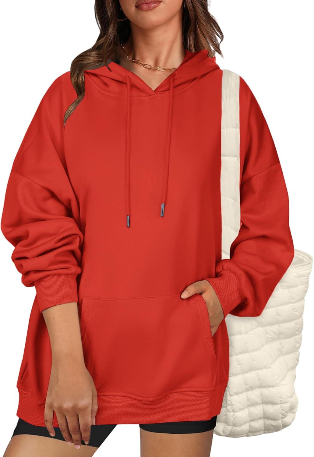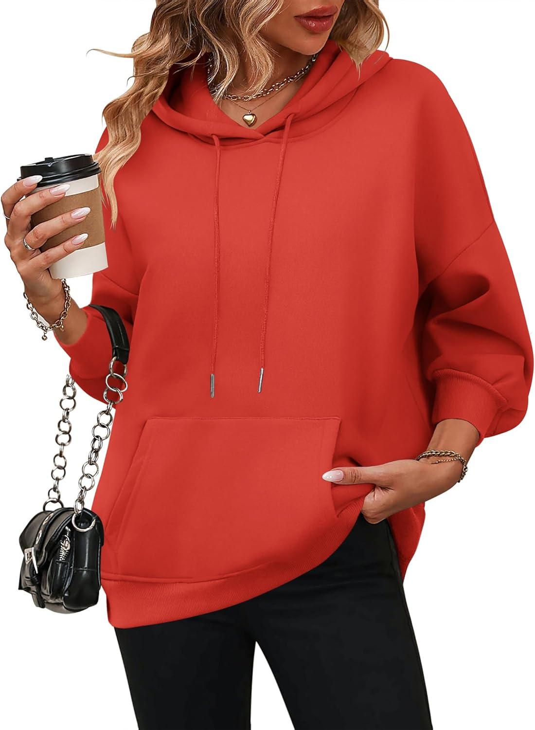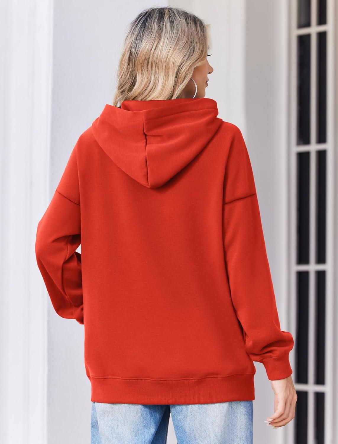 Zeagoo Womens Oversized Hoodies 2025 Fleece Sweatshirts Long Sleeve Pullover with Pocket Fall Winter Outfits Clothes(Red)
