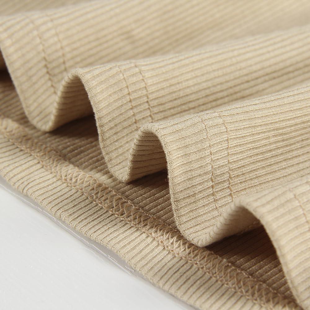 Zeagoo Womens Ribbed Fitted Crop Tops Long Sleeve T Shirts Basic Scoop Neck Casual Slim Fitted Y2k Clothes 2025(Beige)
