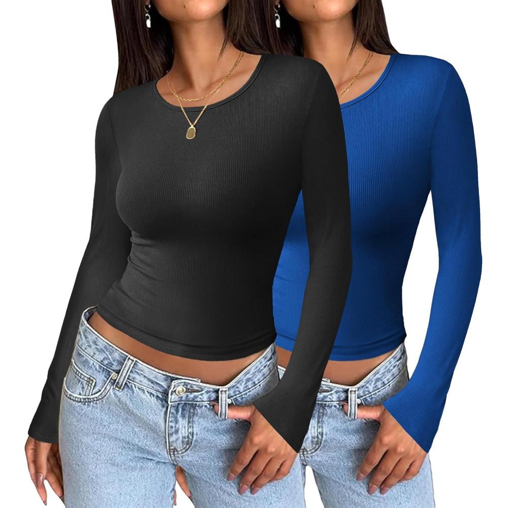 Don’t miss out on our limited-time offer: buy Zeagoo Womens Ribbed Fitted Crop Tops Long Sleeve T Shirts Basic Scoop Neck Casual Slim Fitted Y2k Clothes 2025(Black blue), get {accessory} free!