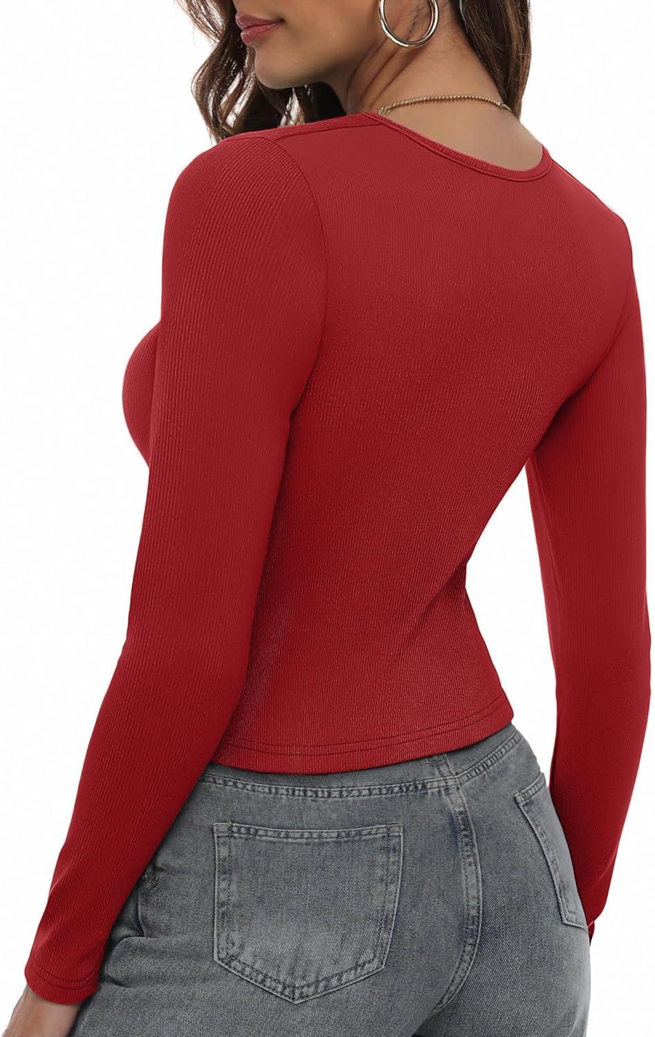 Don’t miss out on our limited-time offer: get a free {accessory} with your purchase of Zeagoo Womens Ribbed Fitted Crop Tops Long Sleeve T Shirts Basic Scoop Neck Casual Slim Fitted Y2k Clothes 2025(Black red).