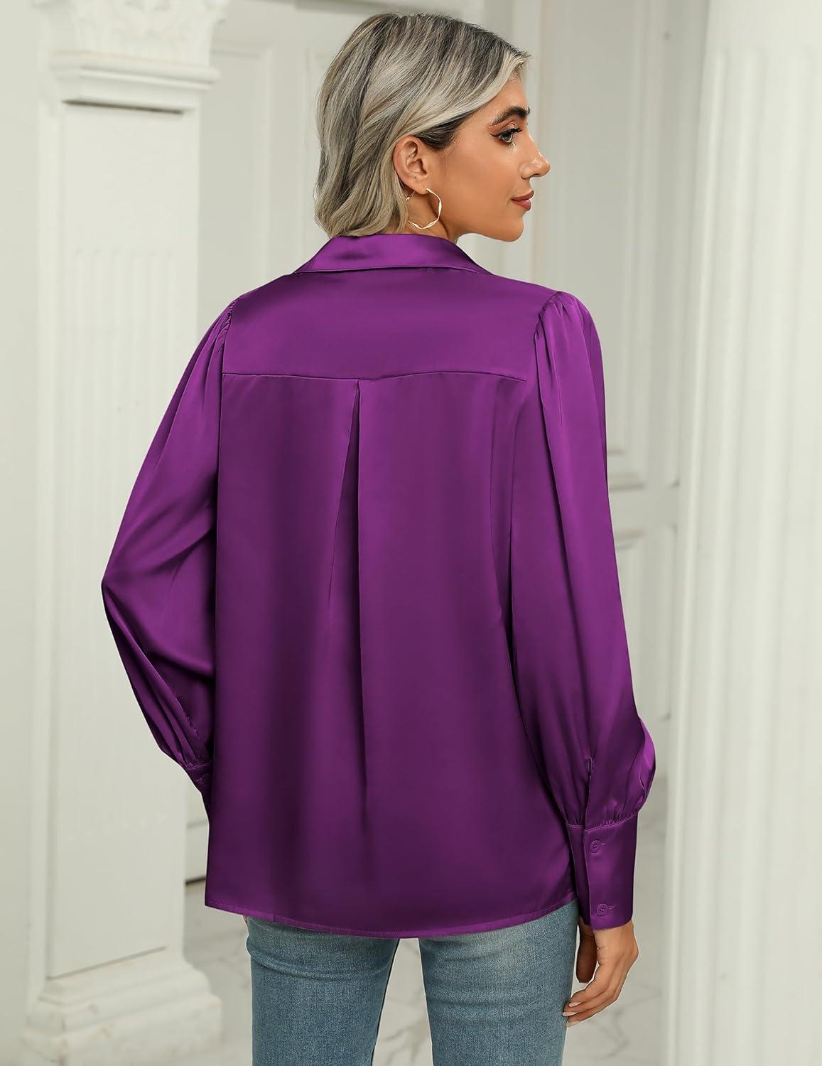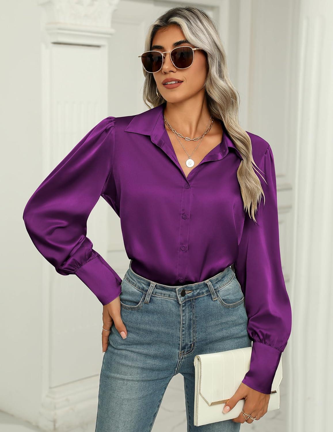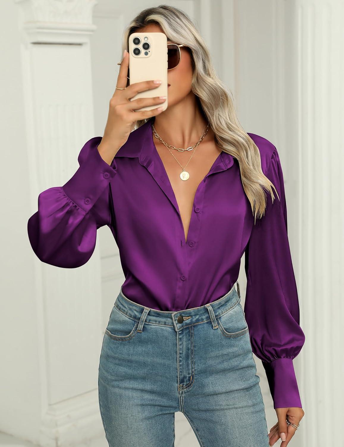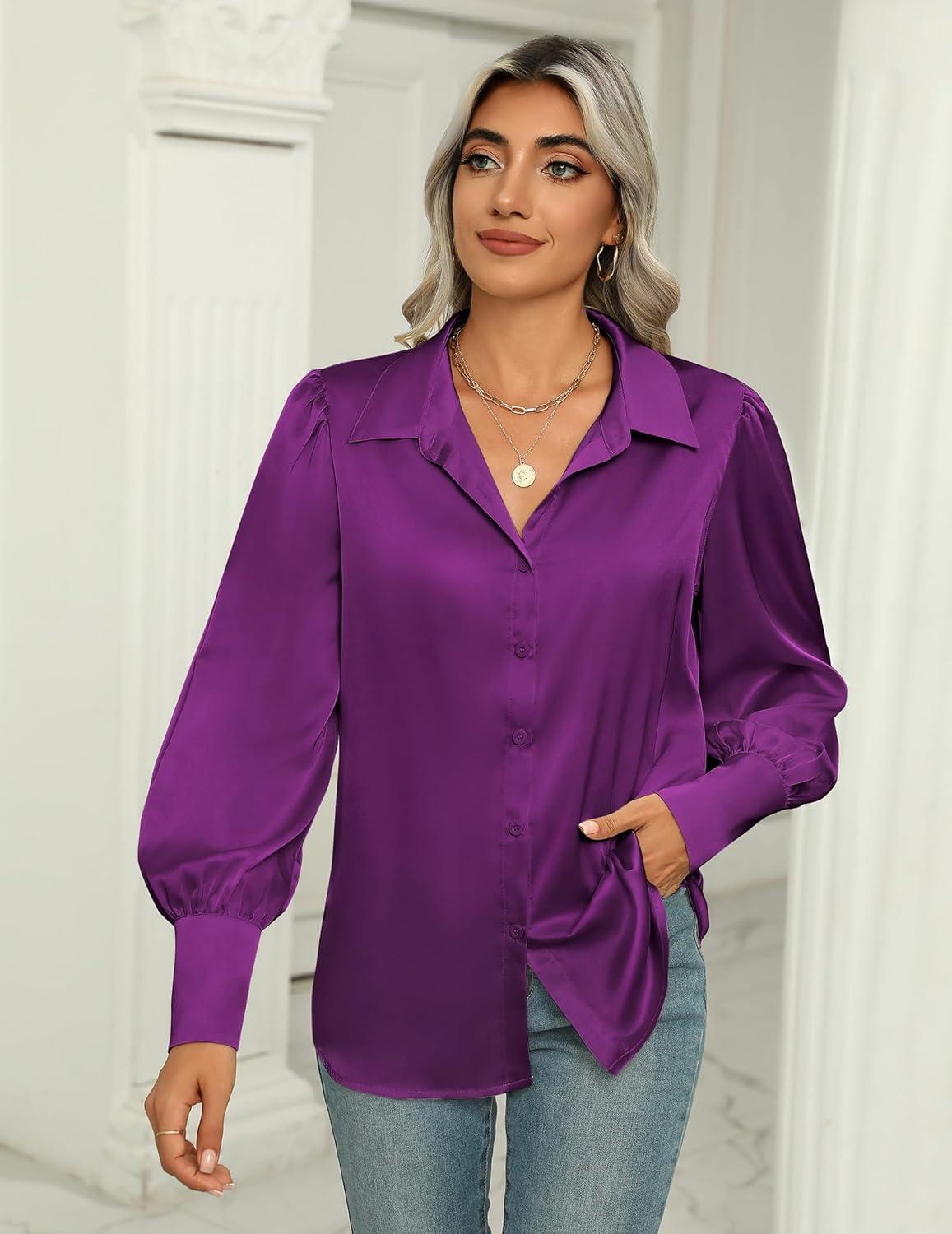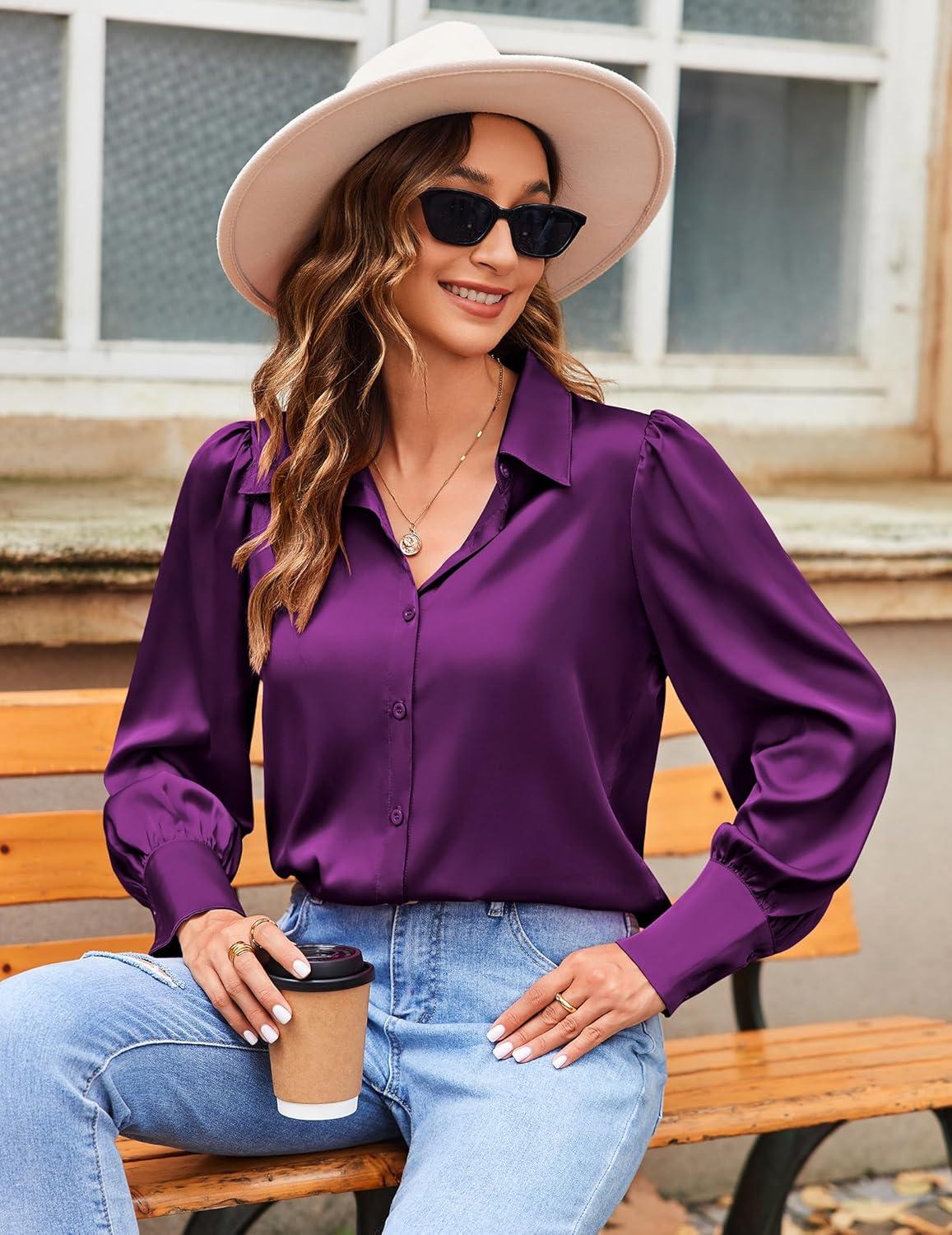 Score big on Zeagoo Womens Satin Blouse Lantern Long Sleeve Silk Button Down Shirt Dressy Casual Business Work Tunic Tops(Purple) and accessories during our BOGO sale. Buy one, get one 50% off!