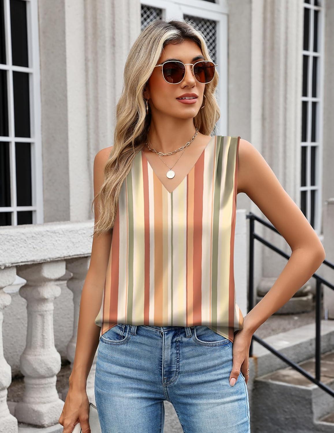 Zeagoo Women’s Silk Satin Camisole Tank Tops V Neck Pleated Dressy Casual Sleeveless Blouses Summer Business Work Shirts(Z – Mz896)