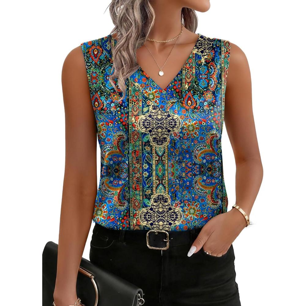 Zeagoo Women’s Silk Satin Tank Tops V Neck Casual Camisoles Sleeveless Business Work Blouses Dressy Summer Shirts(P-mz779)