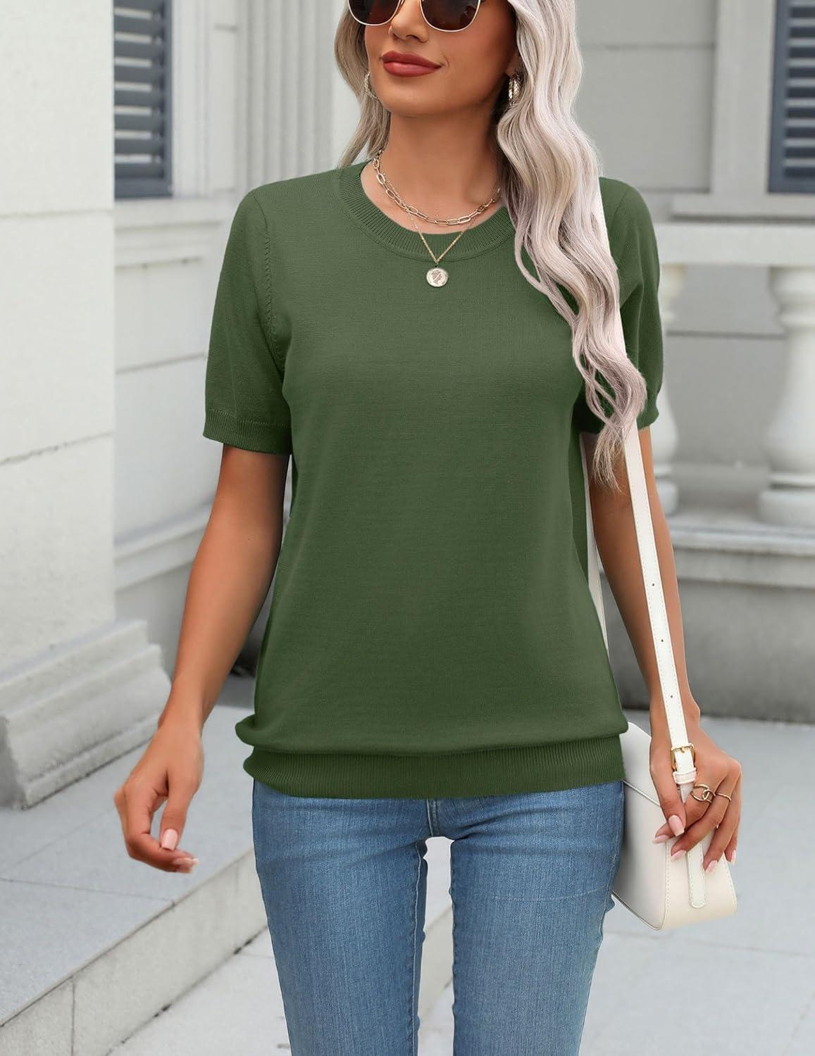 Zeagoo Womens Summer Short Sleeve Tops Crew Neck Lightweight Pullover Sweaters Loose Dressy Casual Blouse Basic Clothes(Army Green)