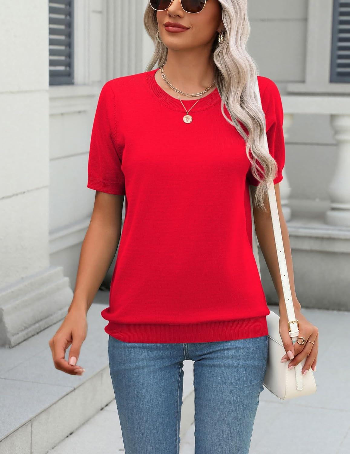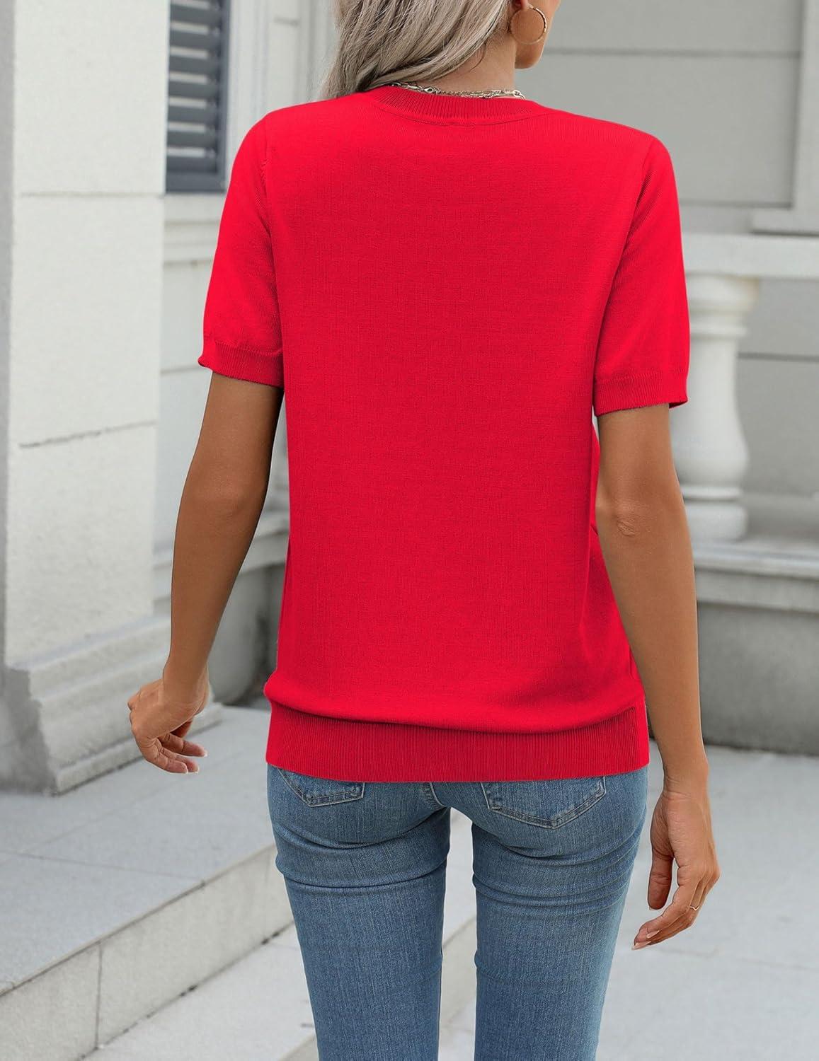 Zeagoo Womens Summer Short Sleeve Tops Crew Neck Lightweight Pullover Sweaters Loose Dressy Casual Blouse Basic Clothes(Red)