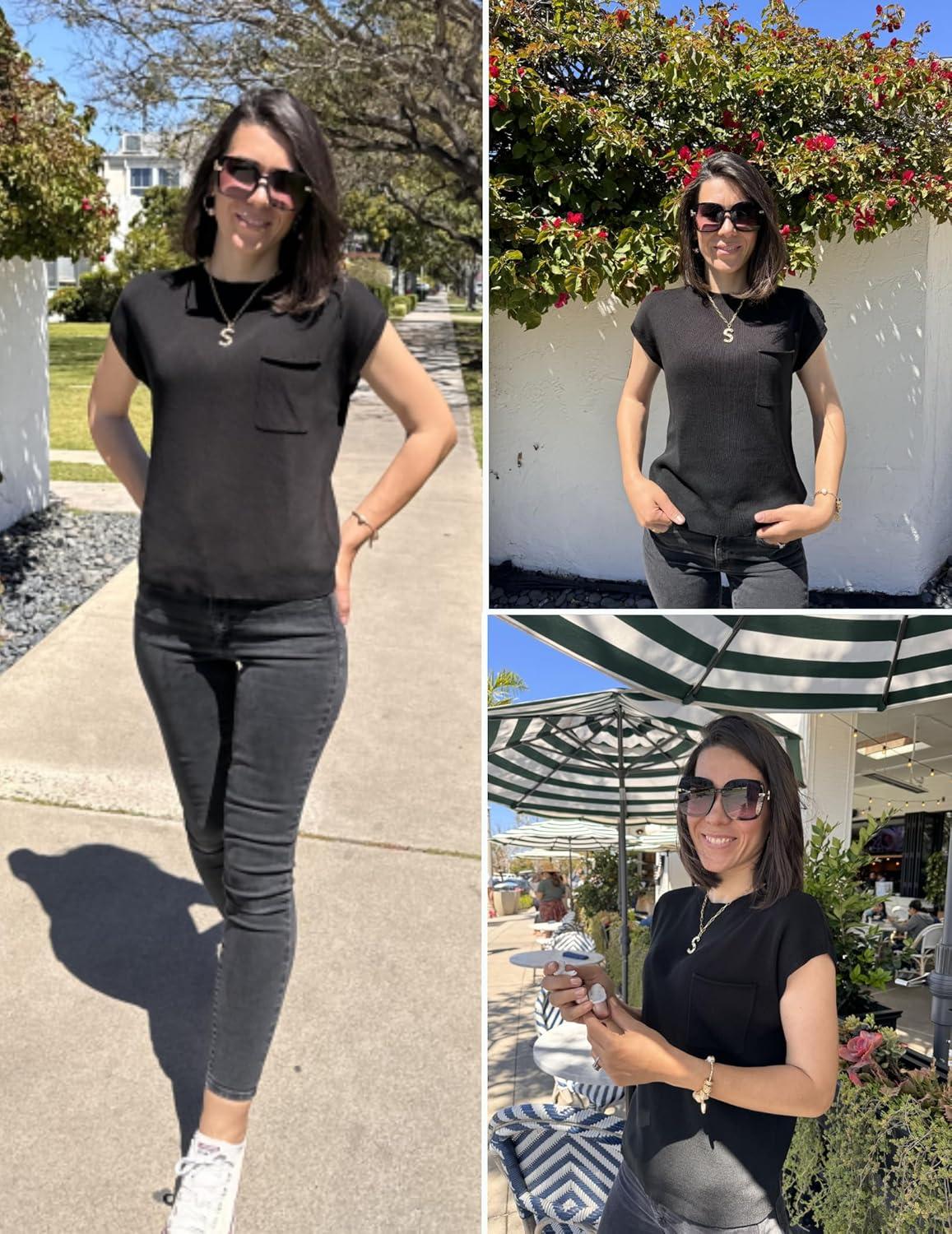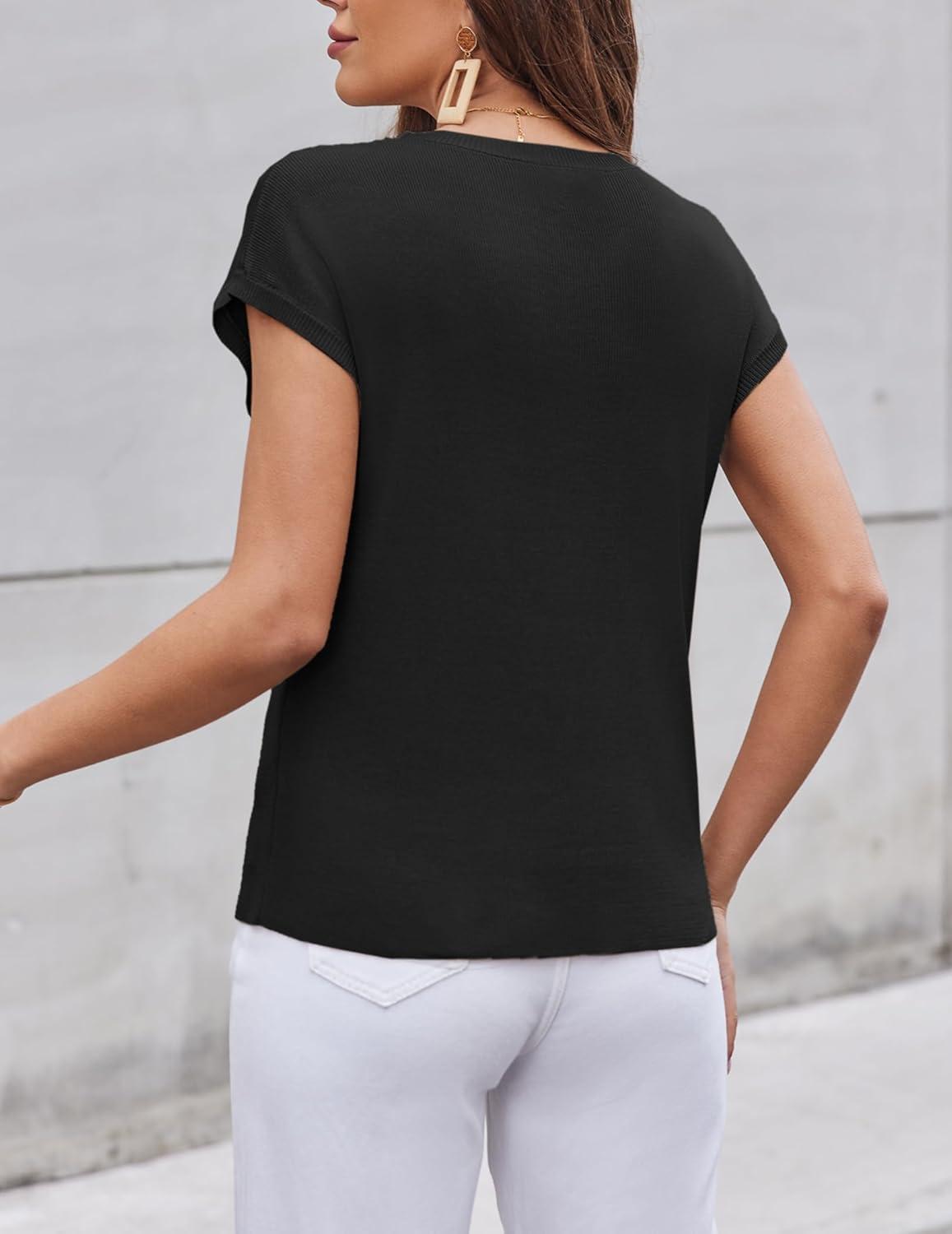 Zeagoo Womens Sweater Vest Fall 2025 Loose Fit Cape Sleeve Knit Ribbed Tank Tops with Front Pocket S-XXL(Black)