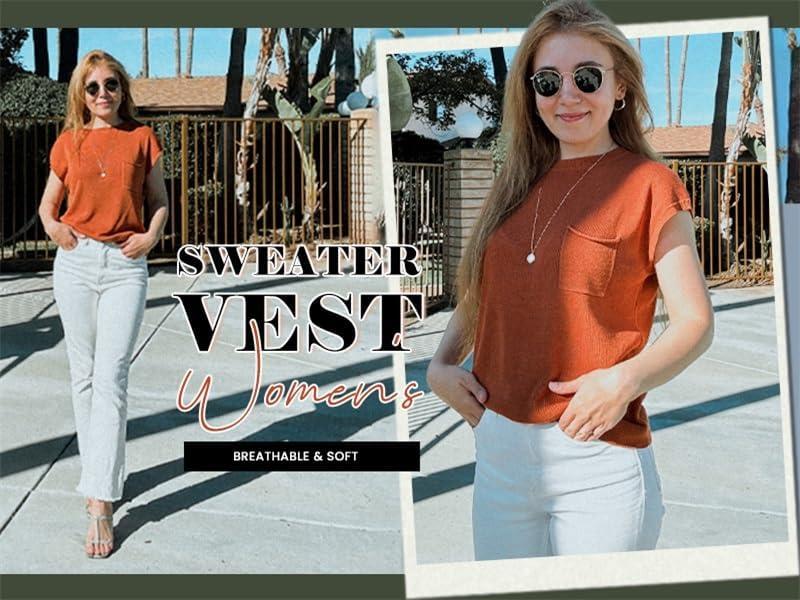 Zeagoo Womens Sweater Vest Fall 2025 Loose Fit Cape Sleeve Knit Ribbed Tank Tops with Front Pocket S-XXL(Caramel)