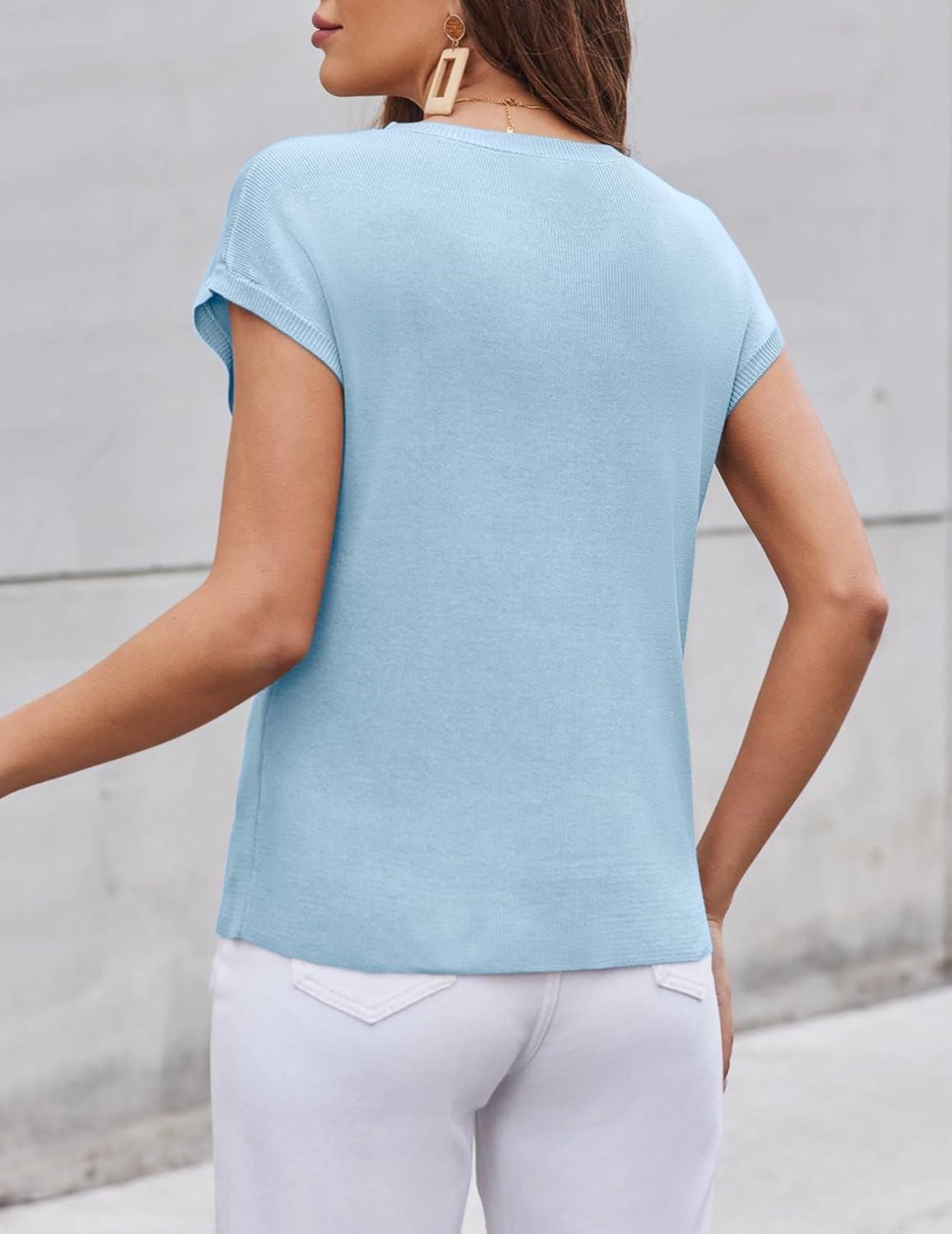 Zeagoo Womens Sweater Vest Fall 2025 Loose Fit Cape Sleeve Knit Ribbed Tank Tops with Front Pocket S-XXL(White)