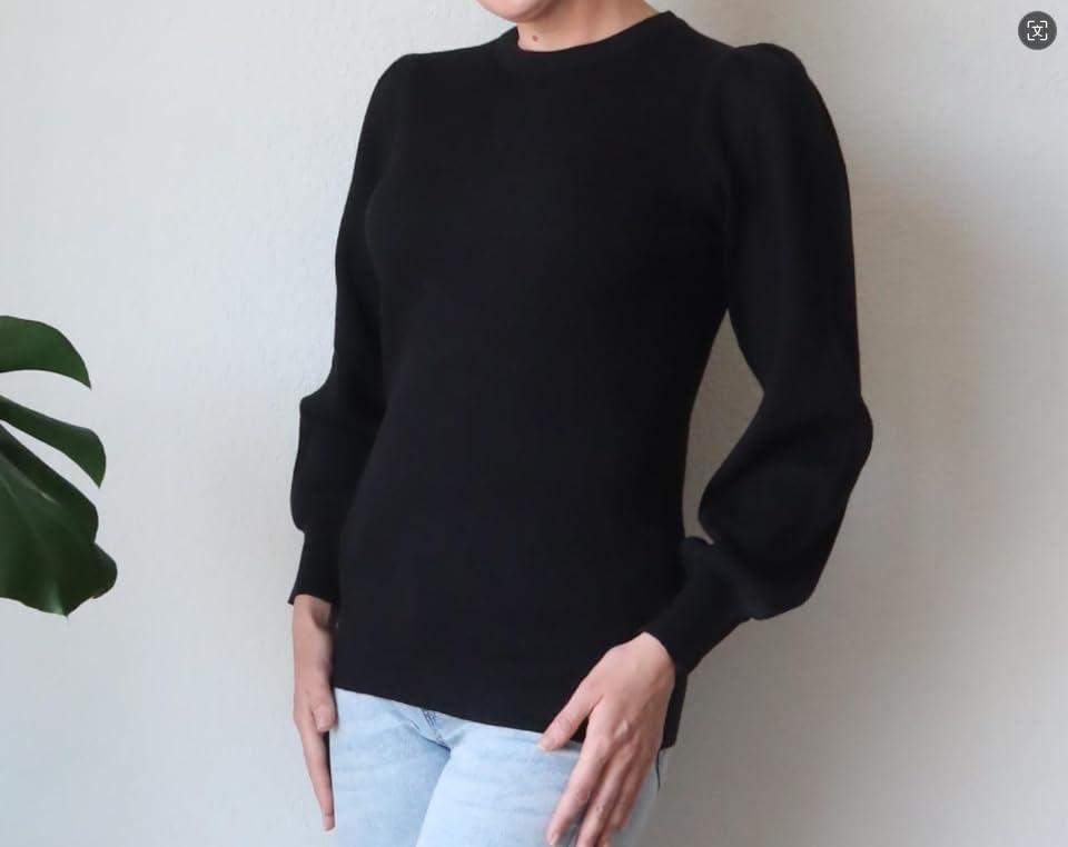 Zeagoo Womens Sweaters Fall 2025 Dressy Casual Long Sleeve Shirts Ribbed Knit Winter Outfits Puff Pullover Jumper Tops(A Black)