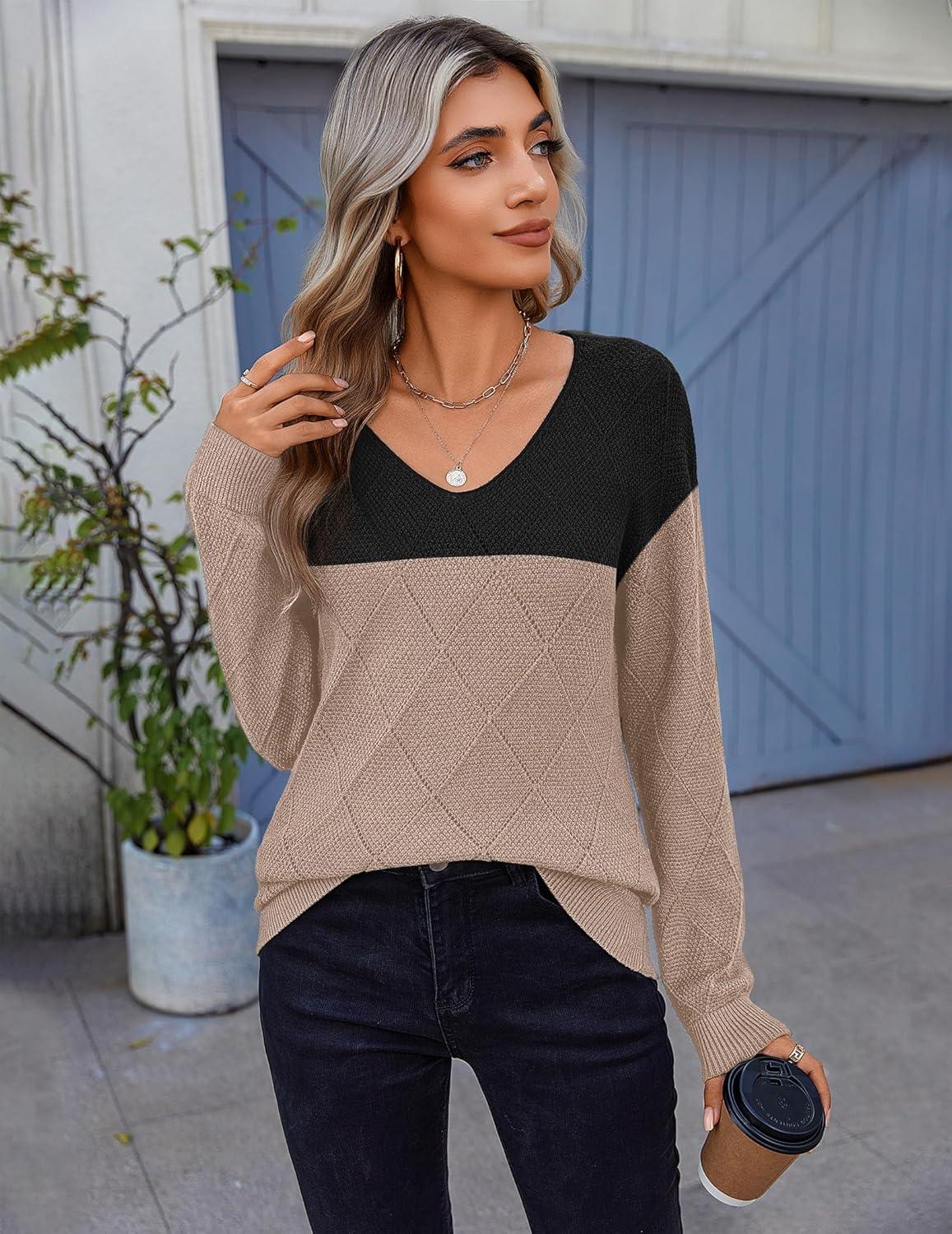 Don’t miss out on our limited-time offer: get a free {accessory} with your purchase of Zeagoo Womens Sweaters Fall 2025 Long Sleeve Knit Pullover V Neck Lightweight Crochet Sweater Tops Dressy Casual(Colorblock Jh395).
