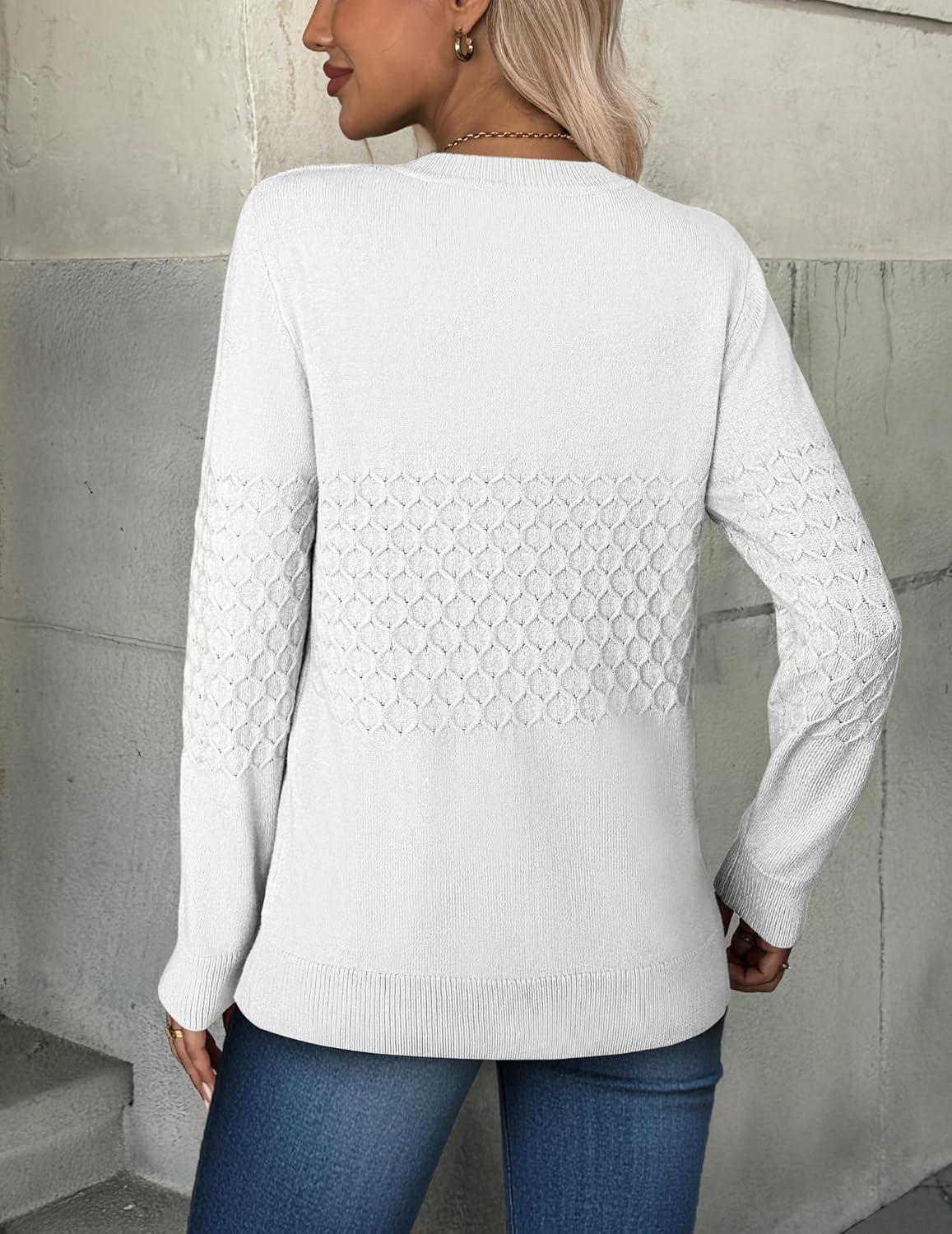 ZEAGOO Womens Sweaters Long Sleeve Tops Crew Neck Knit Pullover Sweaters Fall Fashion 2026 Dressy Casual Basic Clothes(A White)