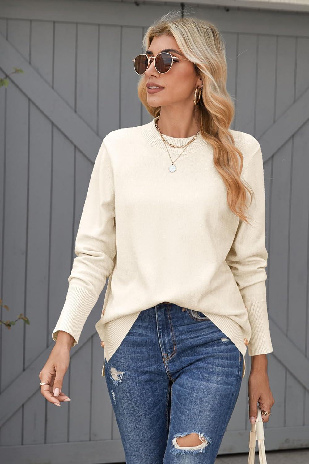 Zeagoo Women’s Sweaters Loose Knit Side Button 2025 Fall Fashion Trendy Casual Pullover Tops Clothes(Apricot)