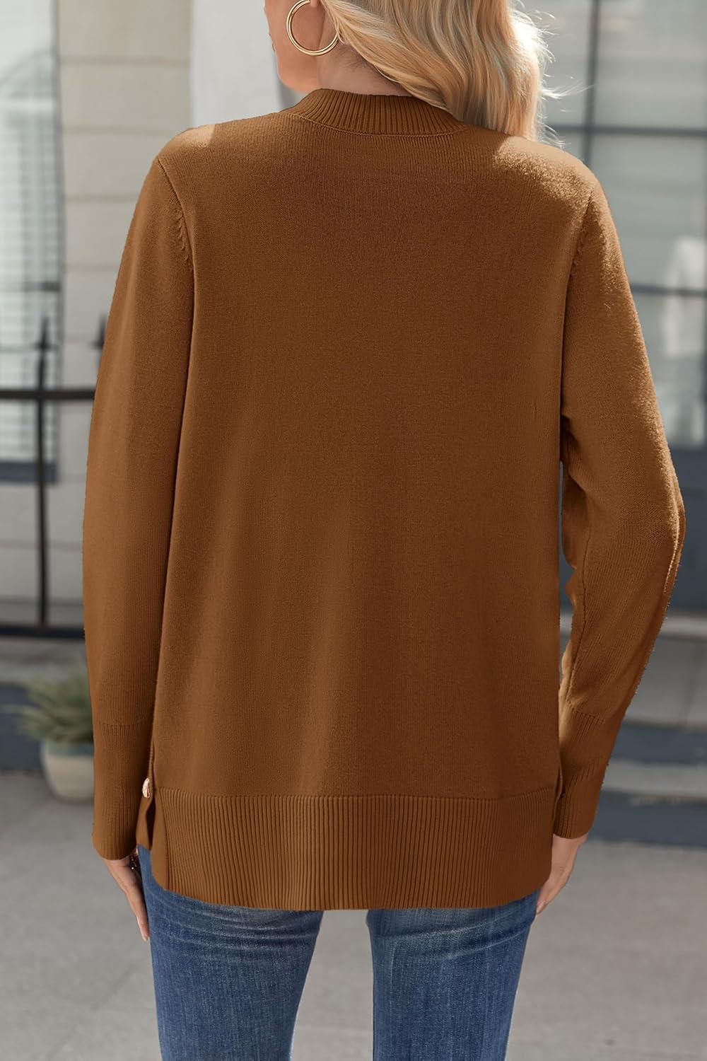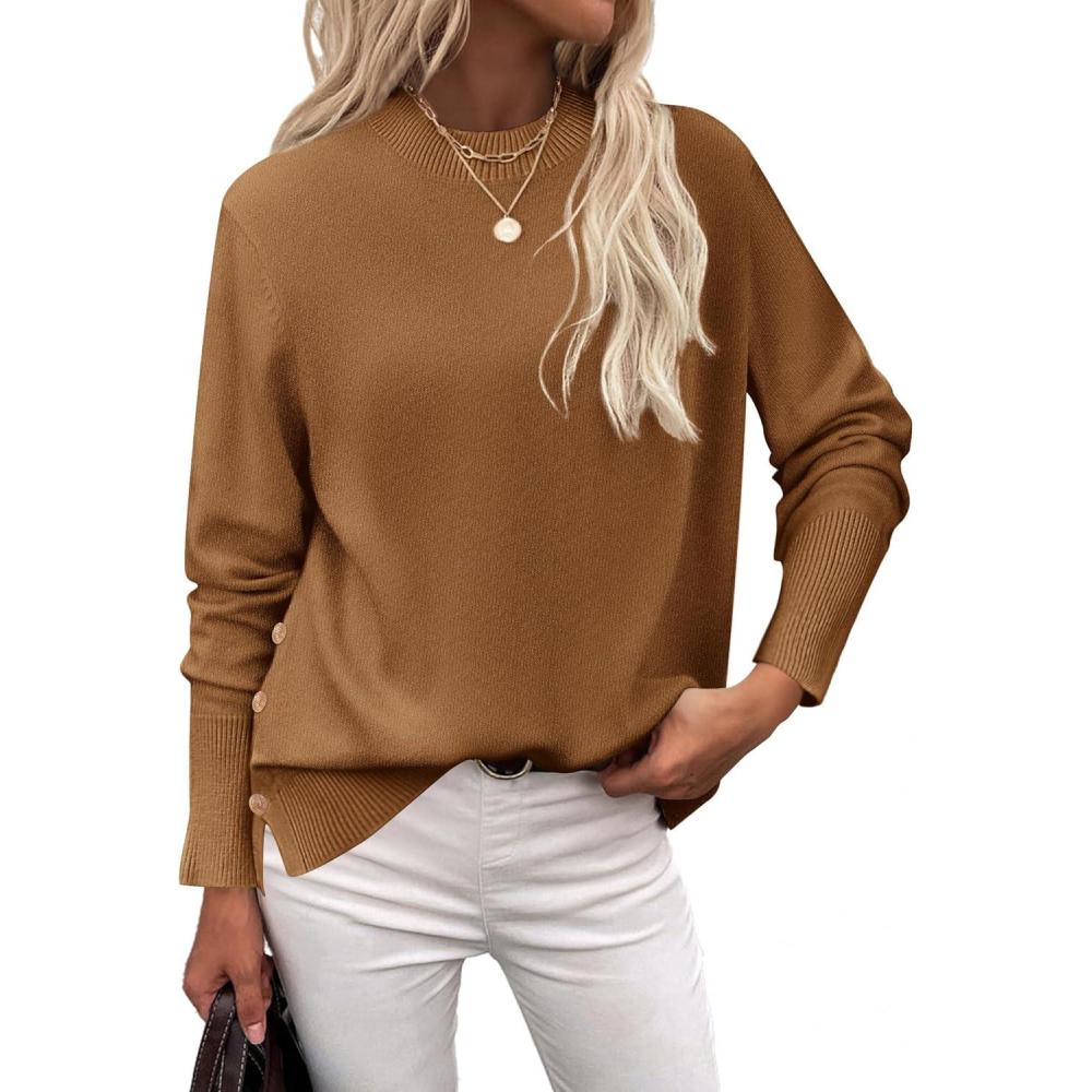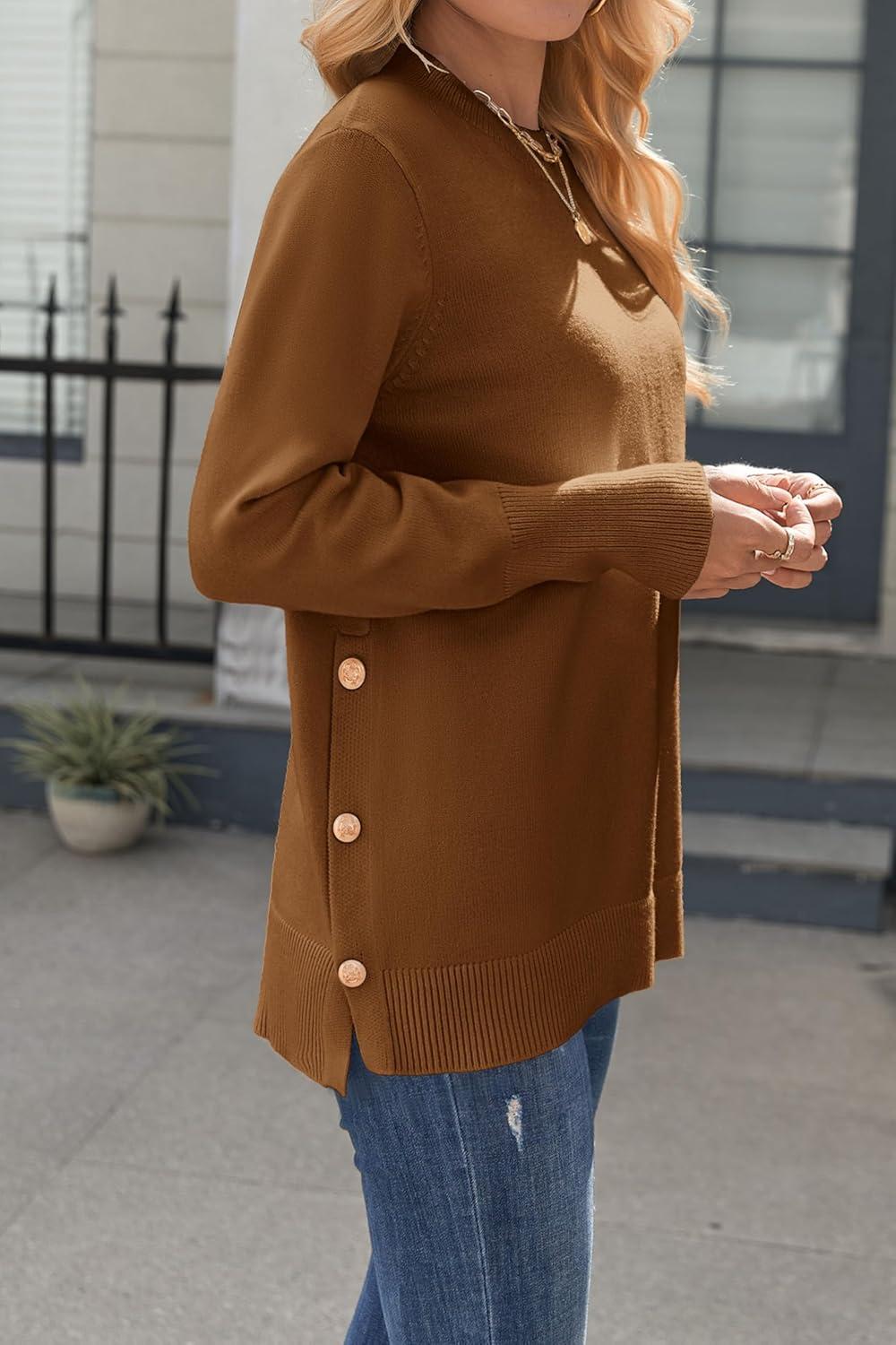 Zeagoo Women’s Sweaters Loose Knit Side Button 2025 Fall Fashion Trendy Casual Pullover Tops Clothes(Brown)