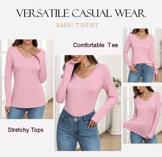 Zeagoo Womens T Shirts Long Sleeve V Neck Basic Tee Casual Loose Fit Soft Fall Tops Outfits 2025 S-XXL(Pink)