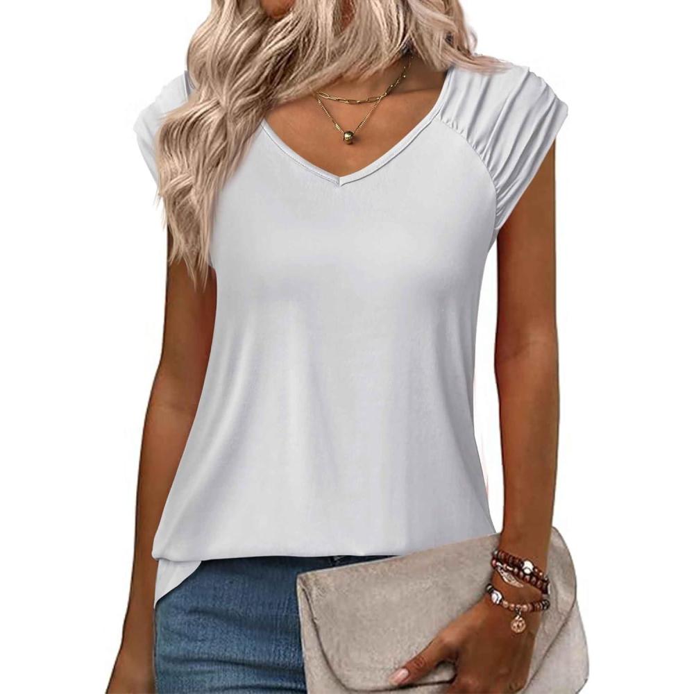 Zeagoo Womens Tops Cute Loose Tank Tops Trendy Casual Dressy Shirts V Neck Cap Sleeve Tops Summer Outfits(White)