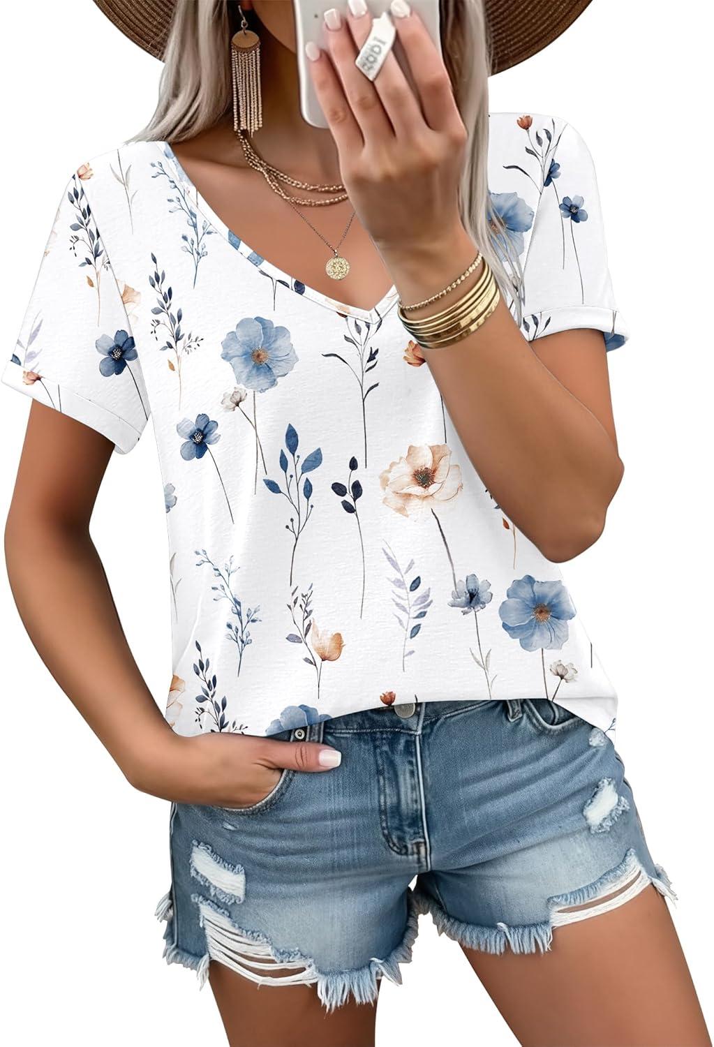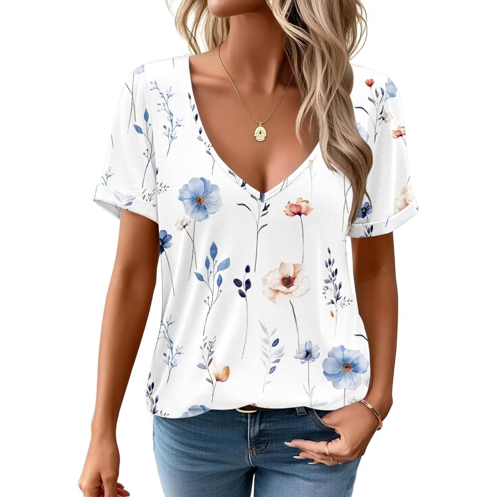 Zeagoo Womens Tops Deep V Neck Shirts Summer Low Cut Top Sexy Short Sleeve Tshirts Trendy Clothes Fashion Clothing S-3XL(Bf290 Boho)