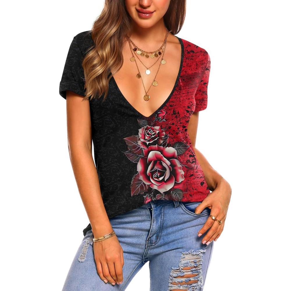 Zeagoo Womens Tops Deep V Neck Shirts Summer Low Cut Top Sexy Short Sleeve Tshirts Trendy Clothes Fashion Clothing S-3XL(Bf309)